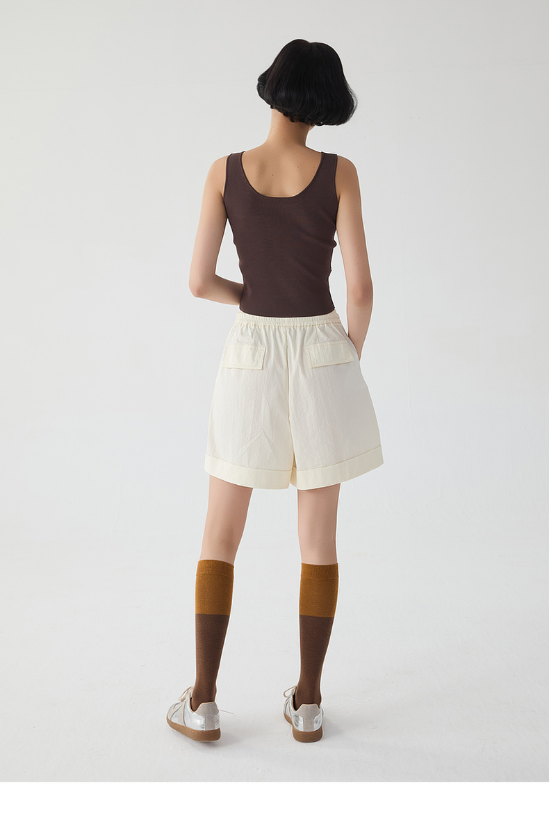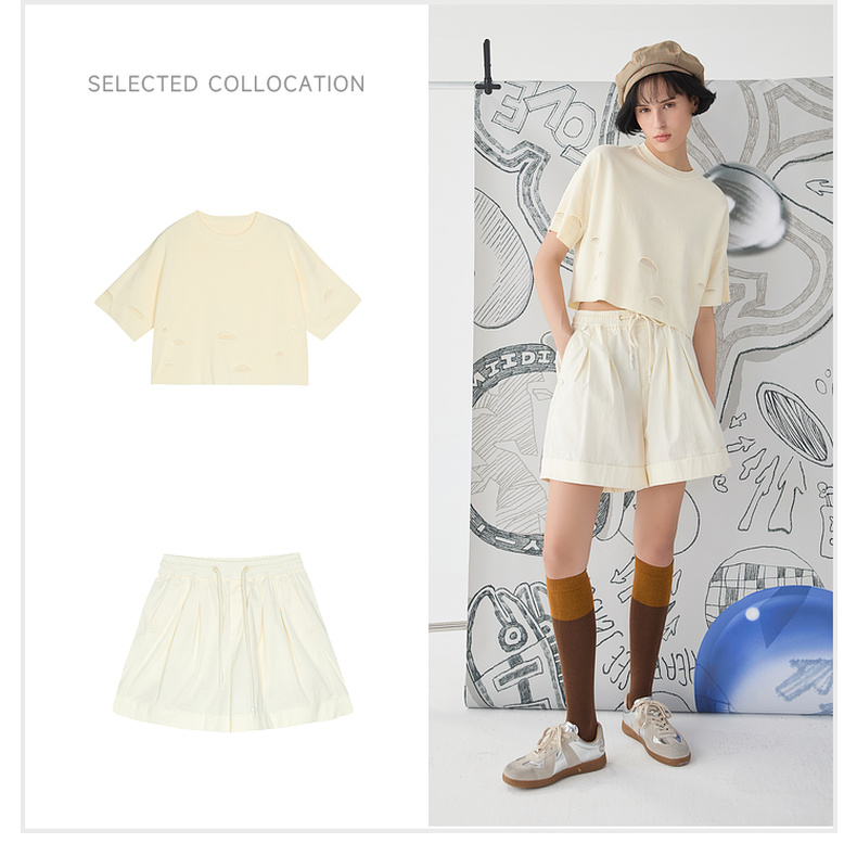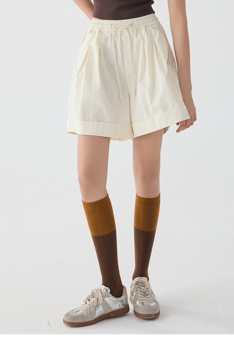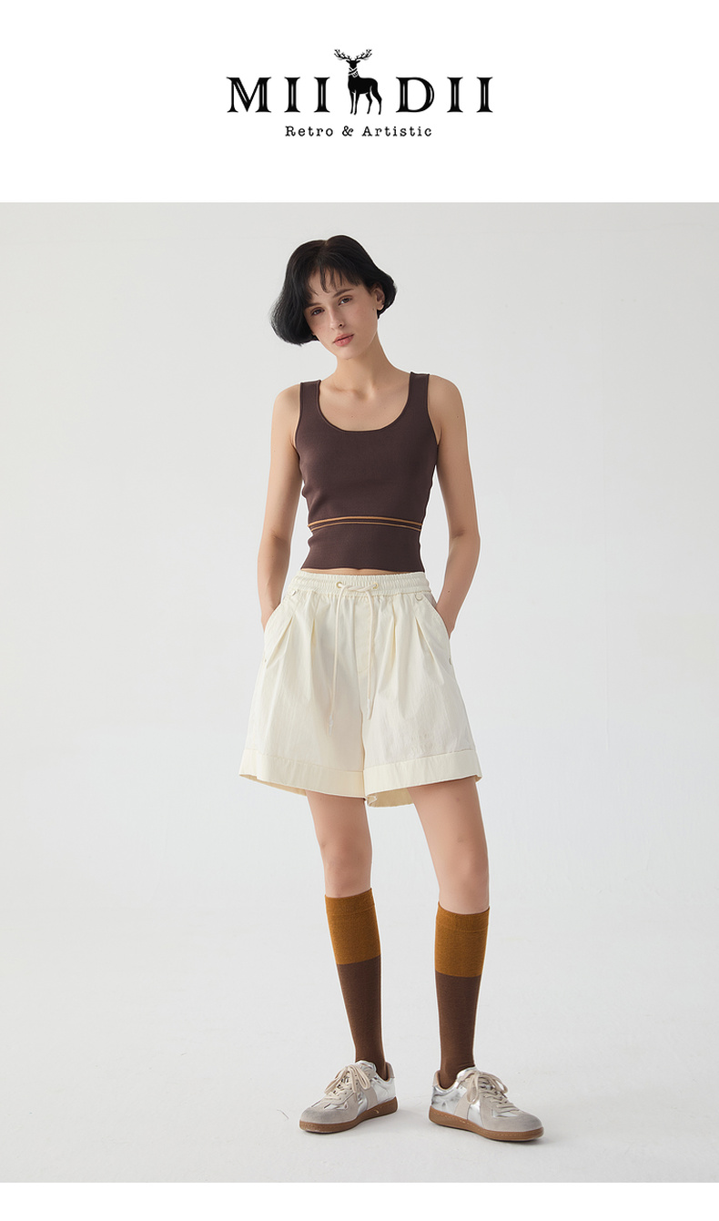 谜底休闲短裤女2025春季新品时尚百搭宽松裤脚绣花短裤251MK0117
