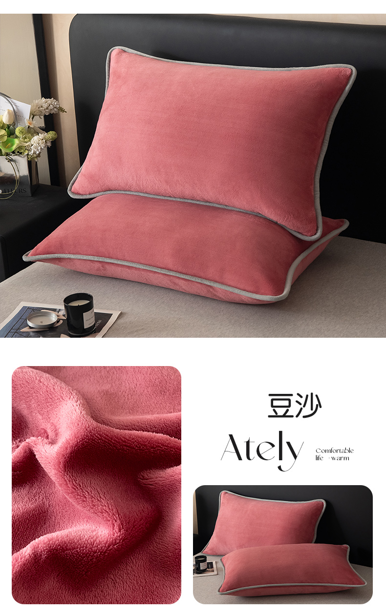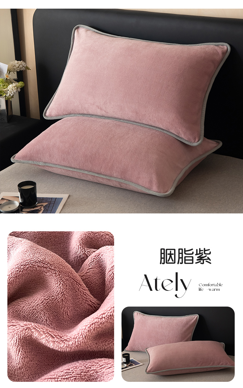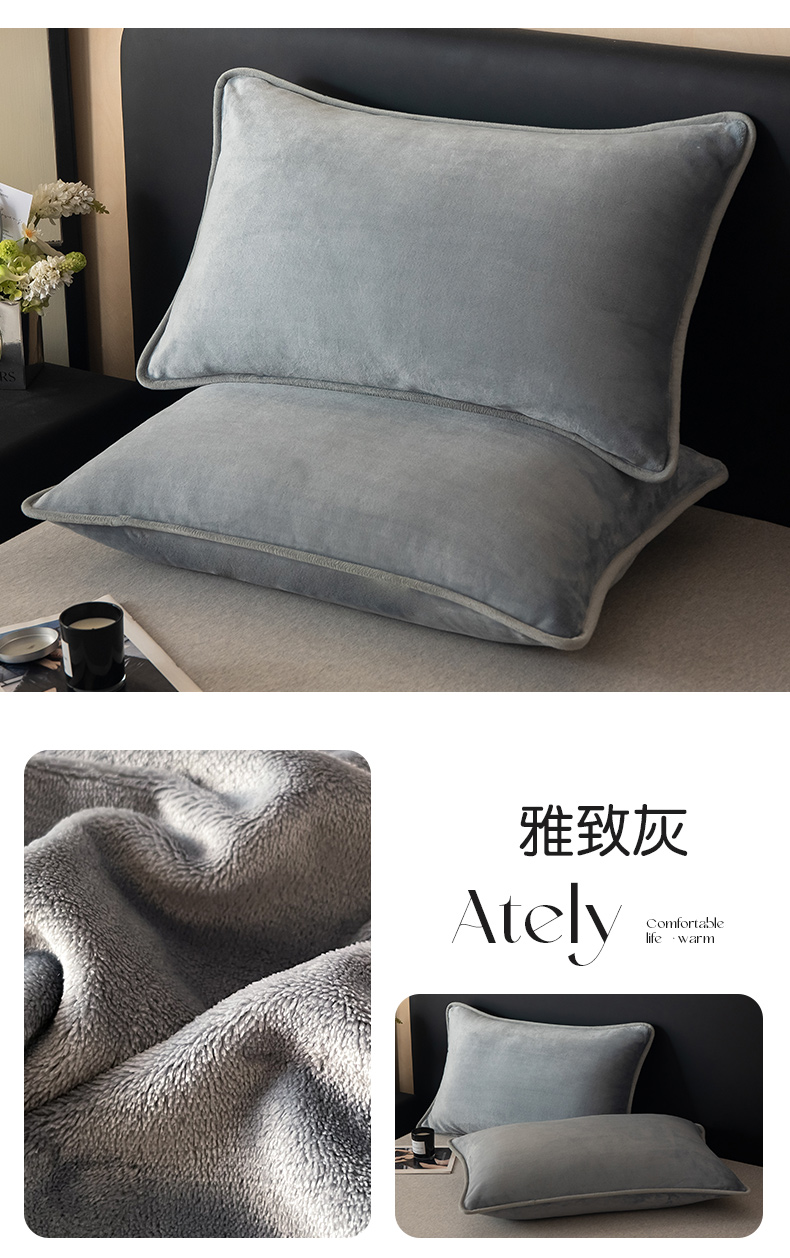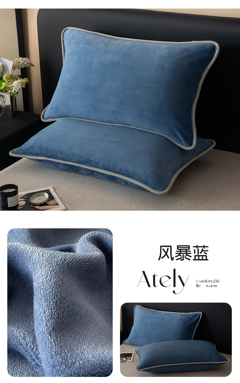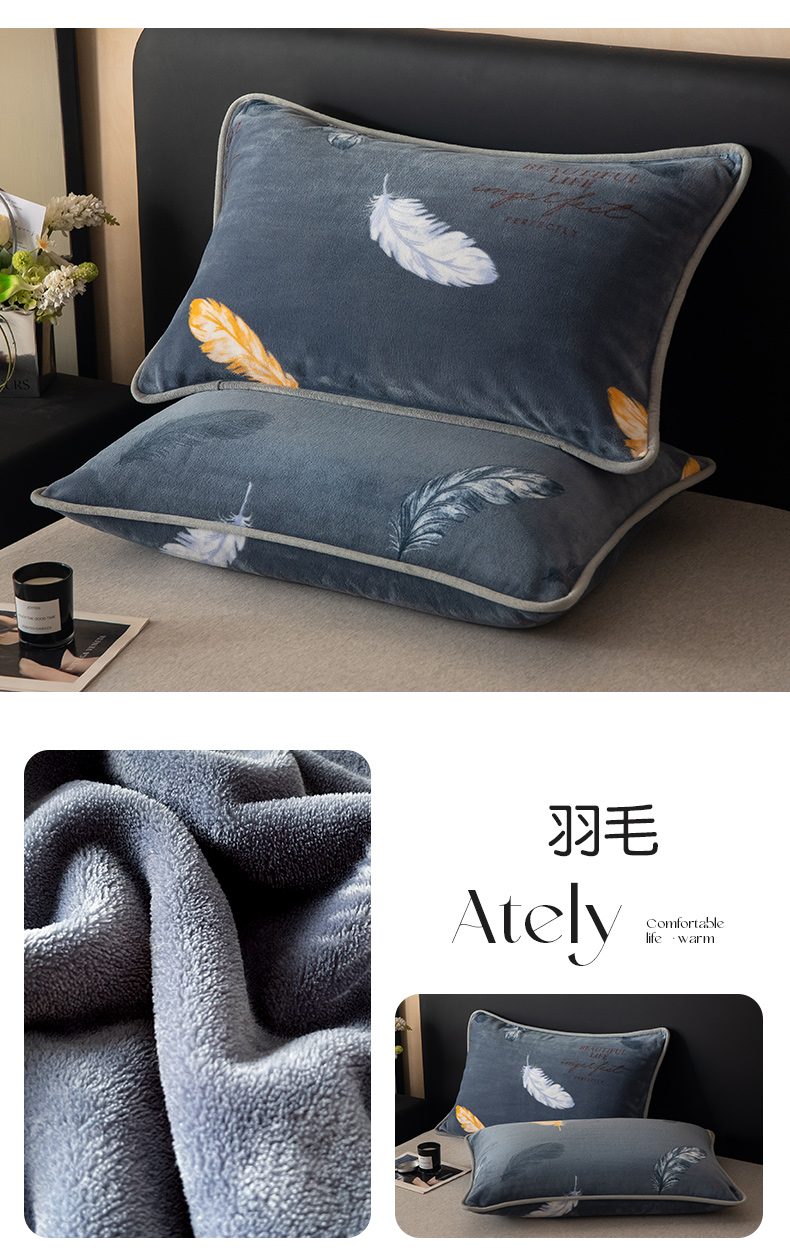 自然醒A类纯色印花包边牛奶绒枕套一对装48x74cm冬季家用加厚枕头套枕芯内胆套QJ