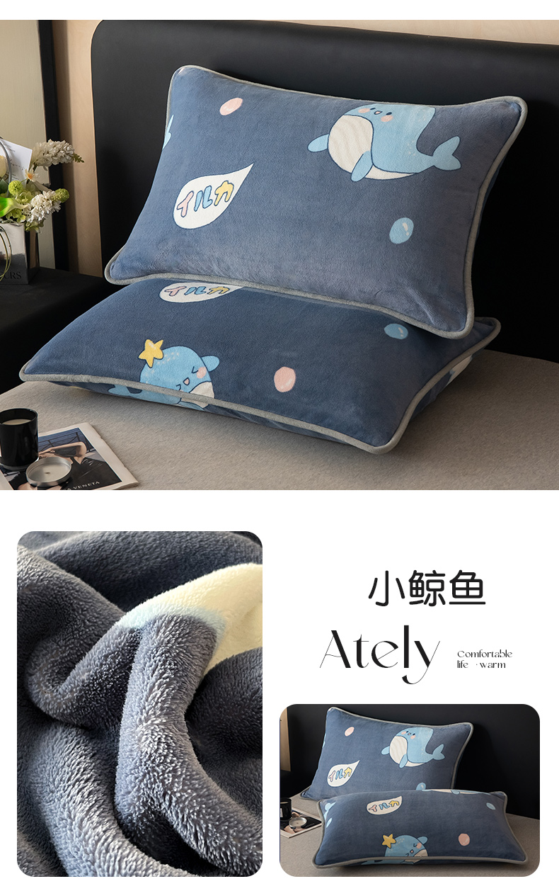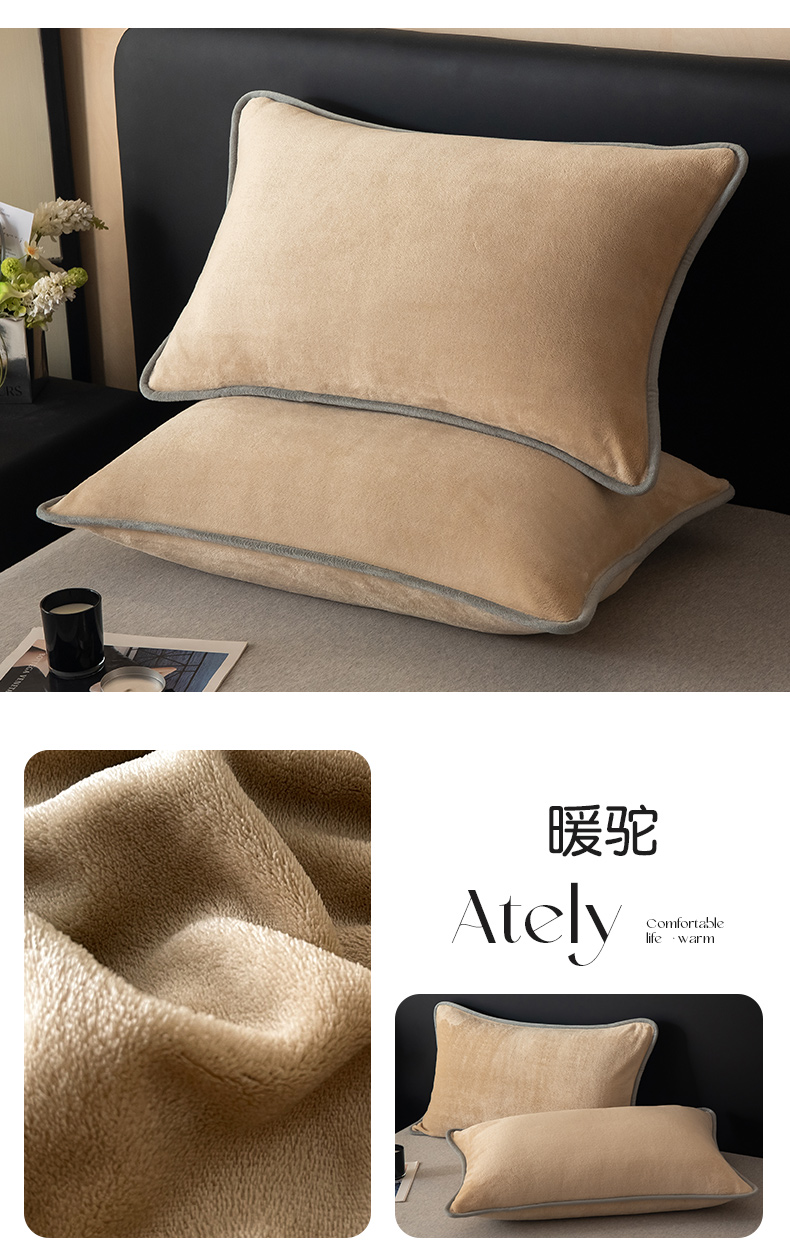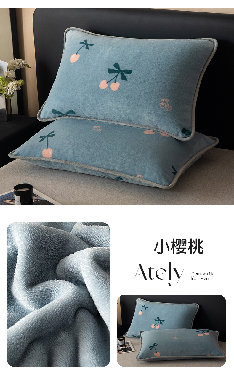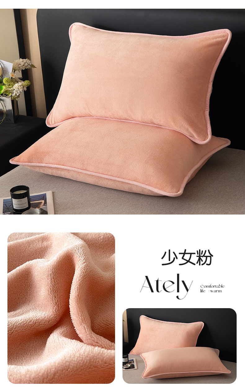 自然醒A类纯色印花包边牛奶绒枕套一对装48x74cm冬季家用加厚枕头套枕芯内胆套QJ