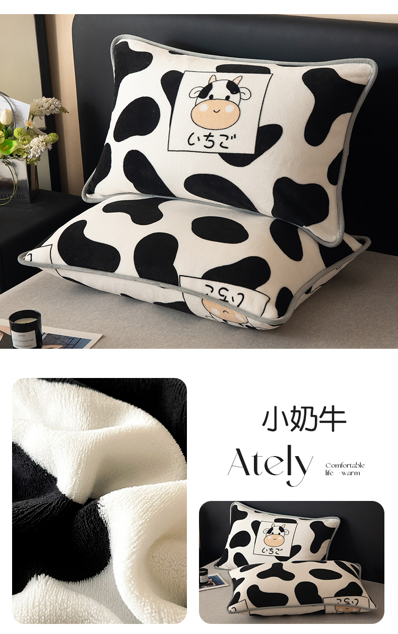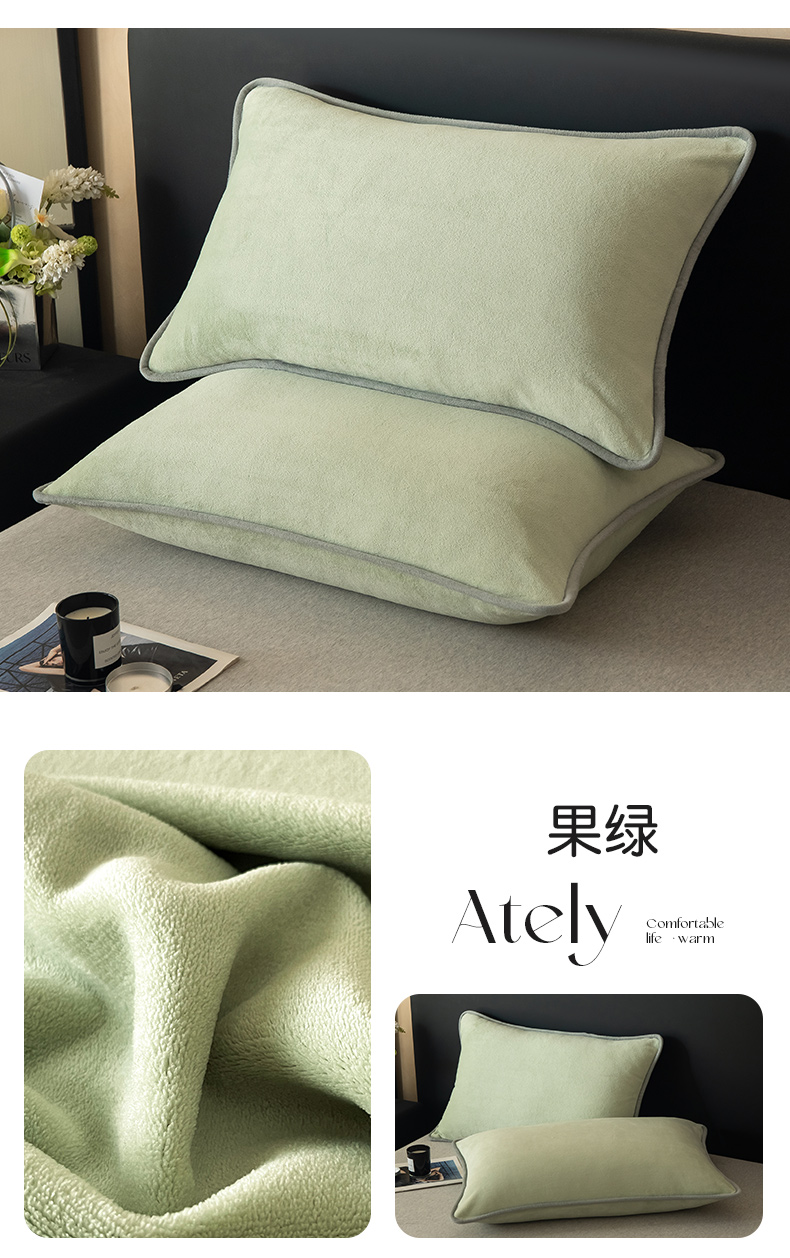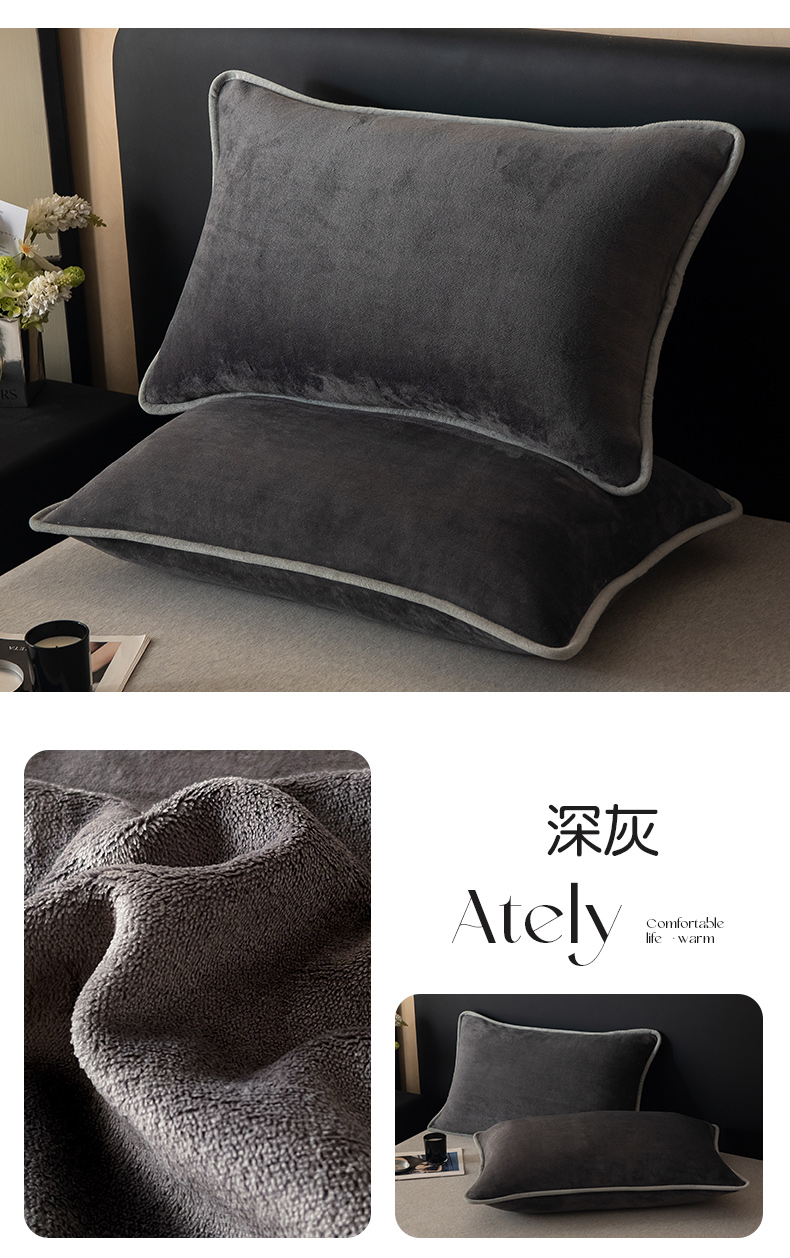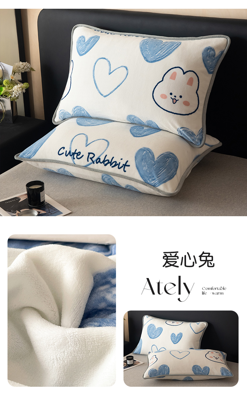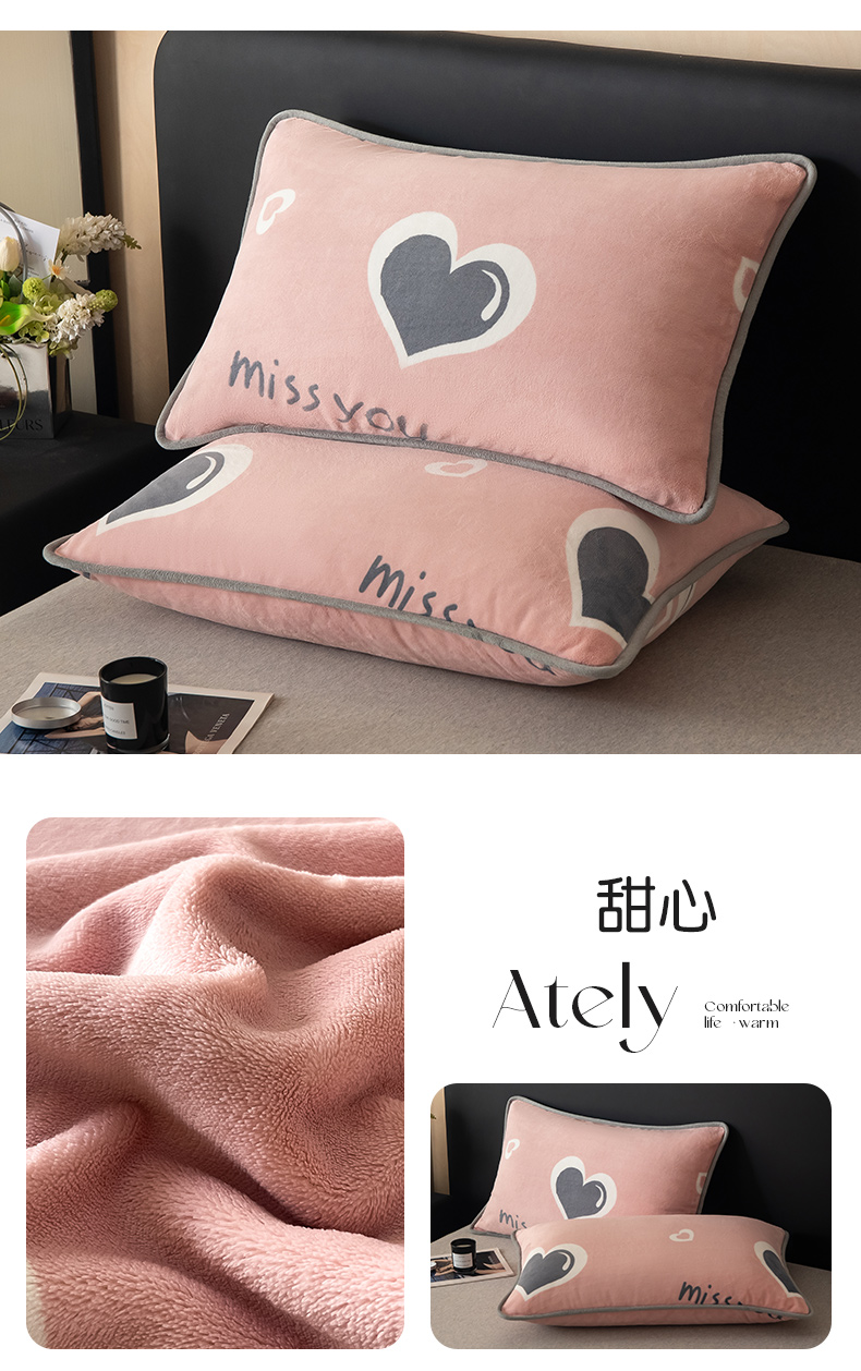 自然醒A类纯色印花包边牛奶绒枕套一对装48x74cm冬季家用加厚枕头套枕芯内胆套QJ