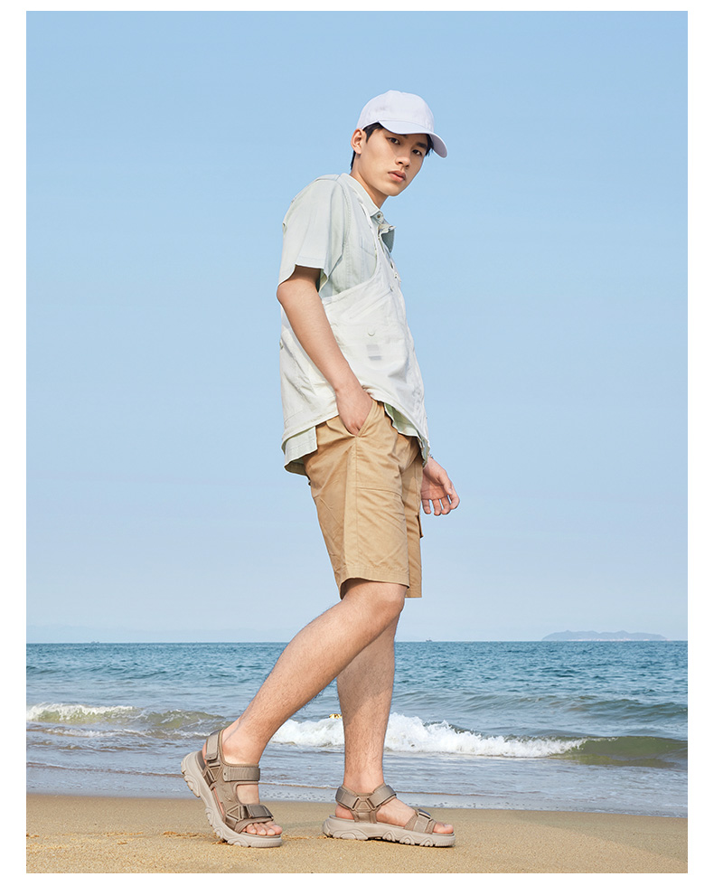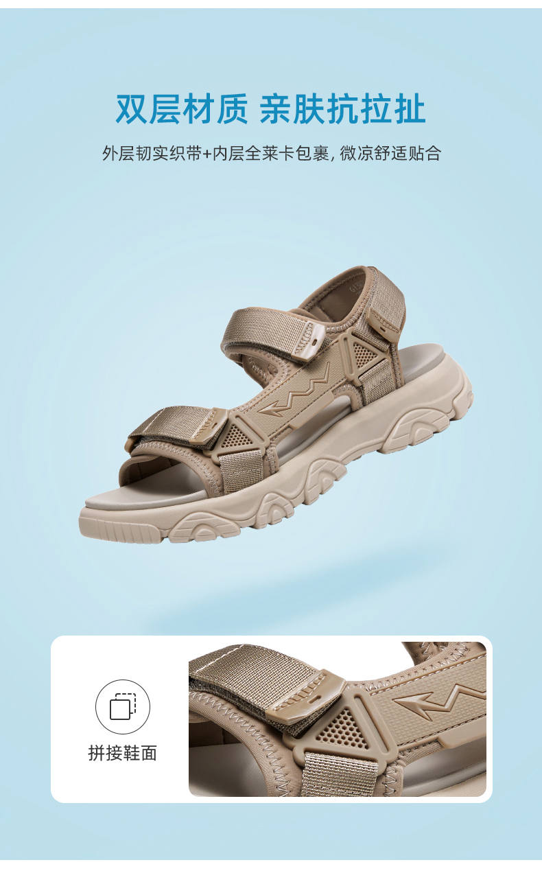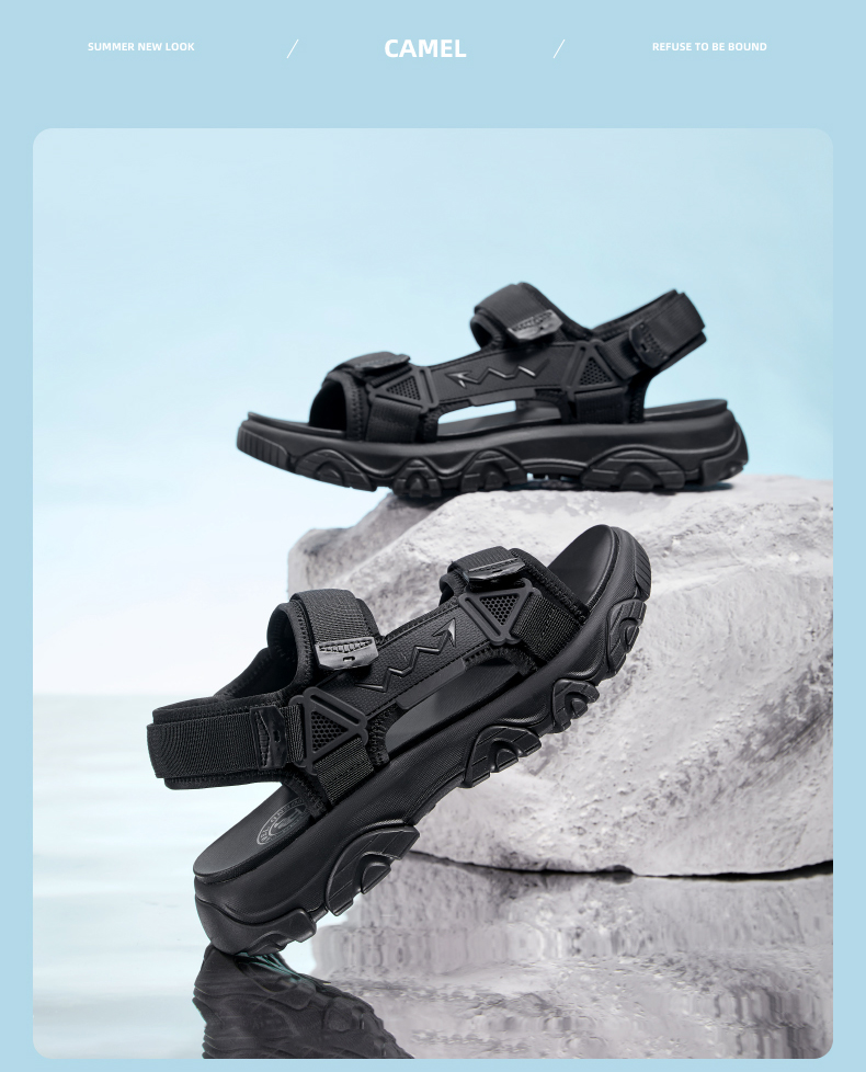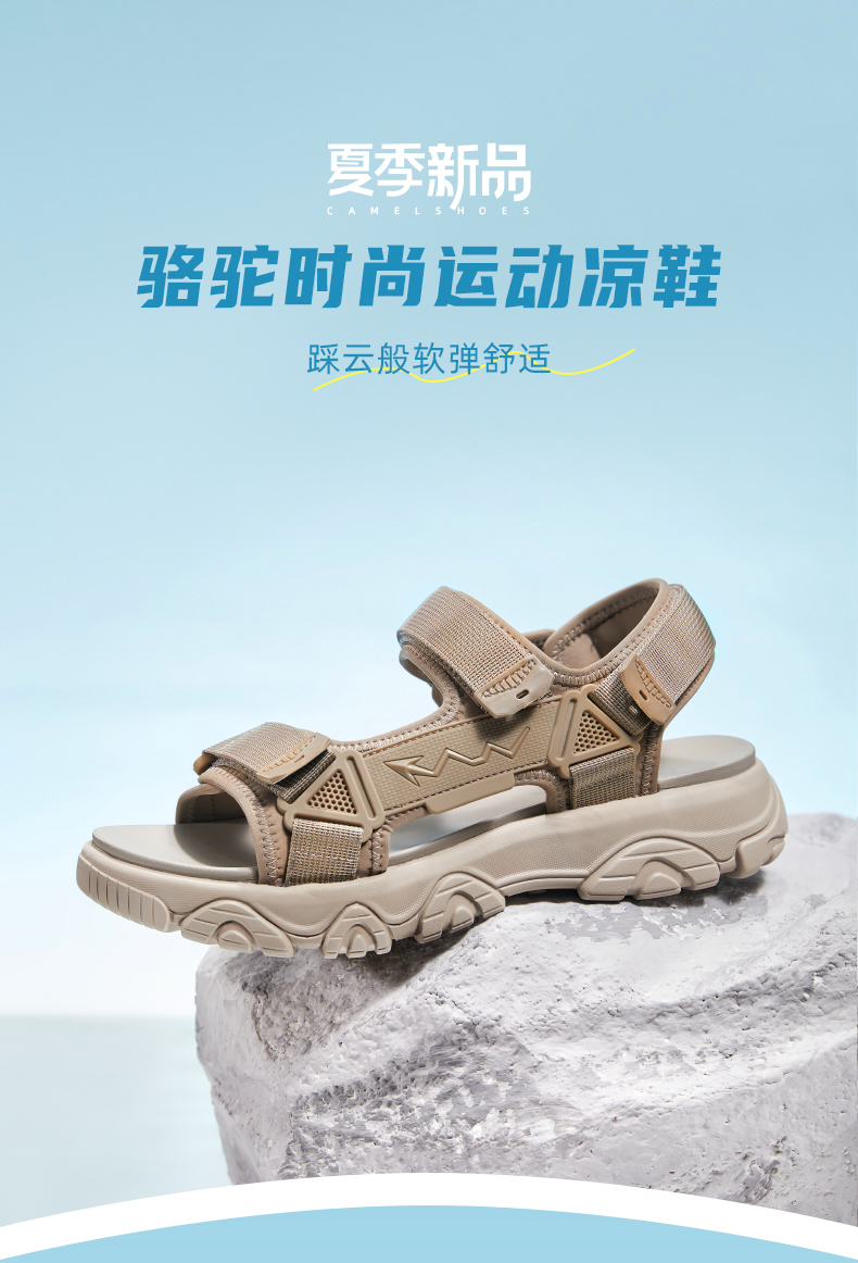 骆驼男鞋2025夏季新款时尚运动凉鞋男款魔术贴户外休闲厚底沙滩鞋 G13M220044