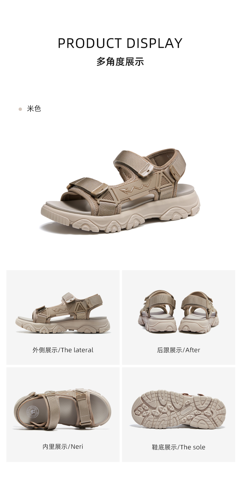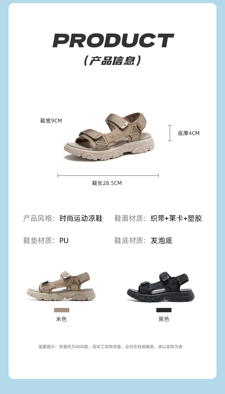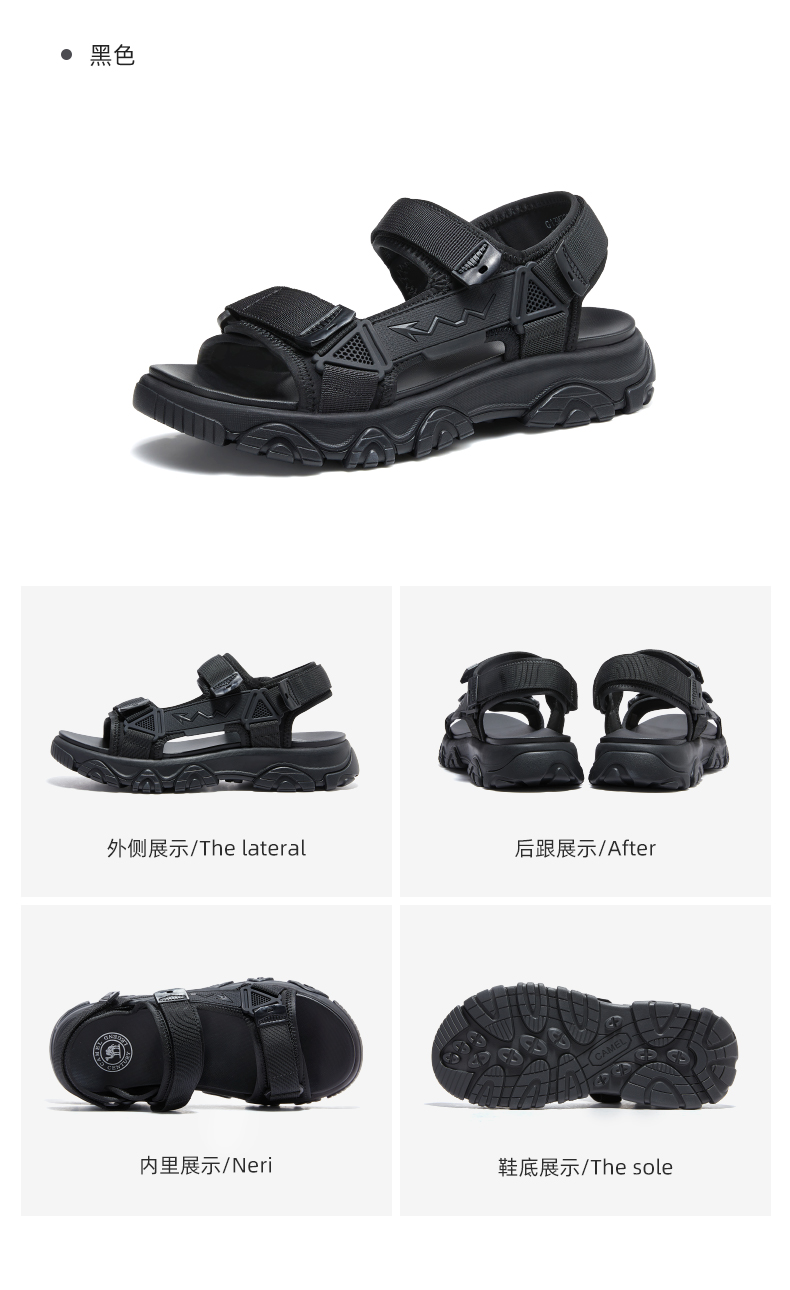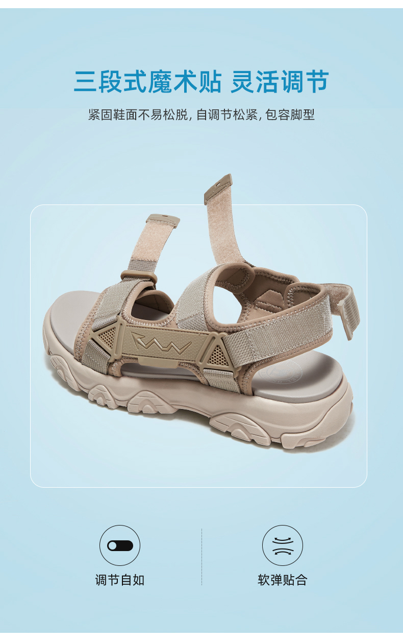 骆驼男鞋2025夏季新款时尚运动凉鞋男款魔术贴户外休闲厚底沙滩鞋 G13M220044
