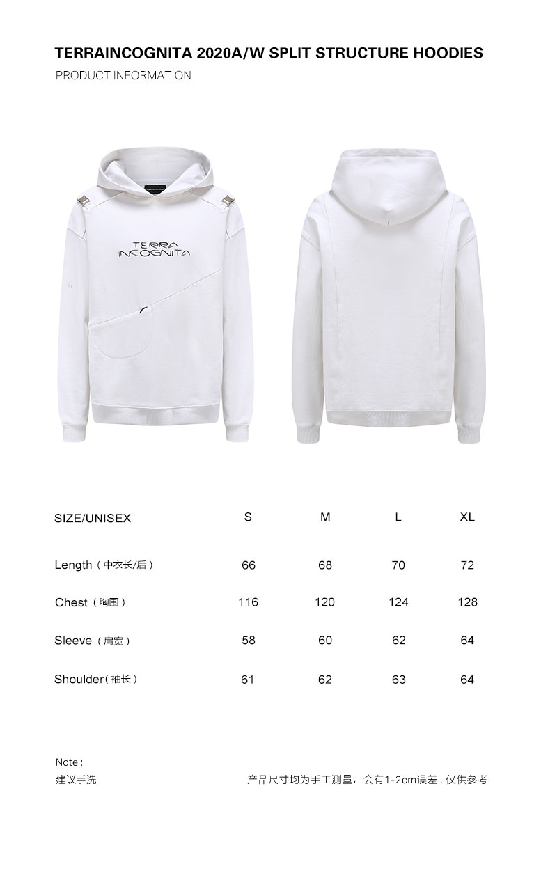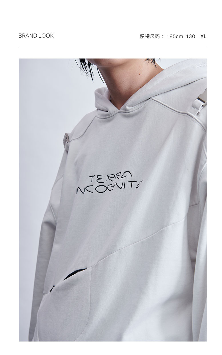 TERRAINCOGNITA20AWG系列分解结构宽松脏白重磅插扣戴帽卫衣男女