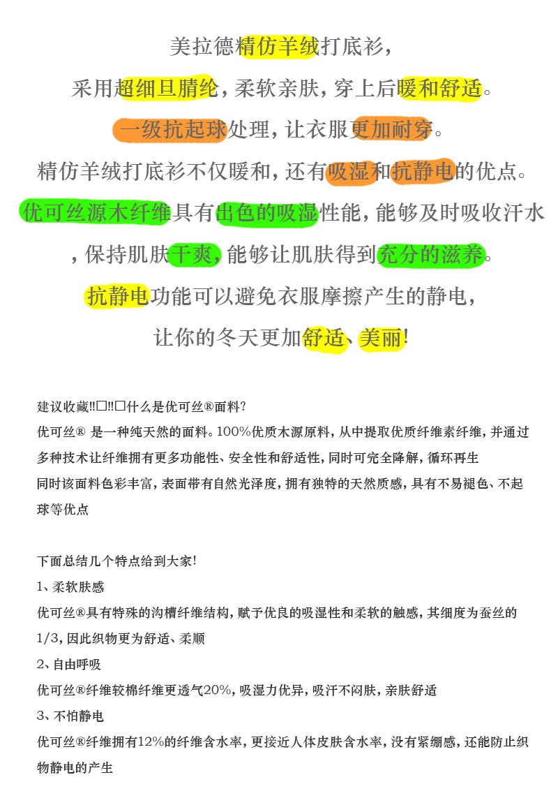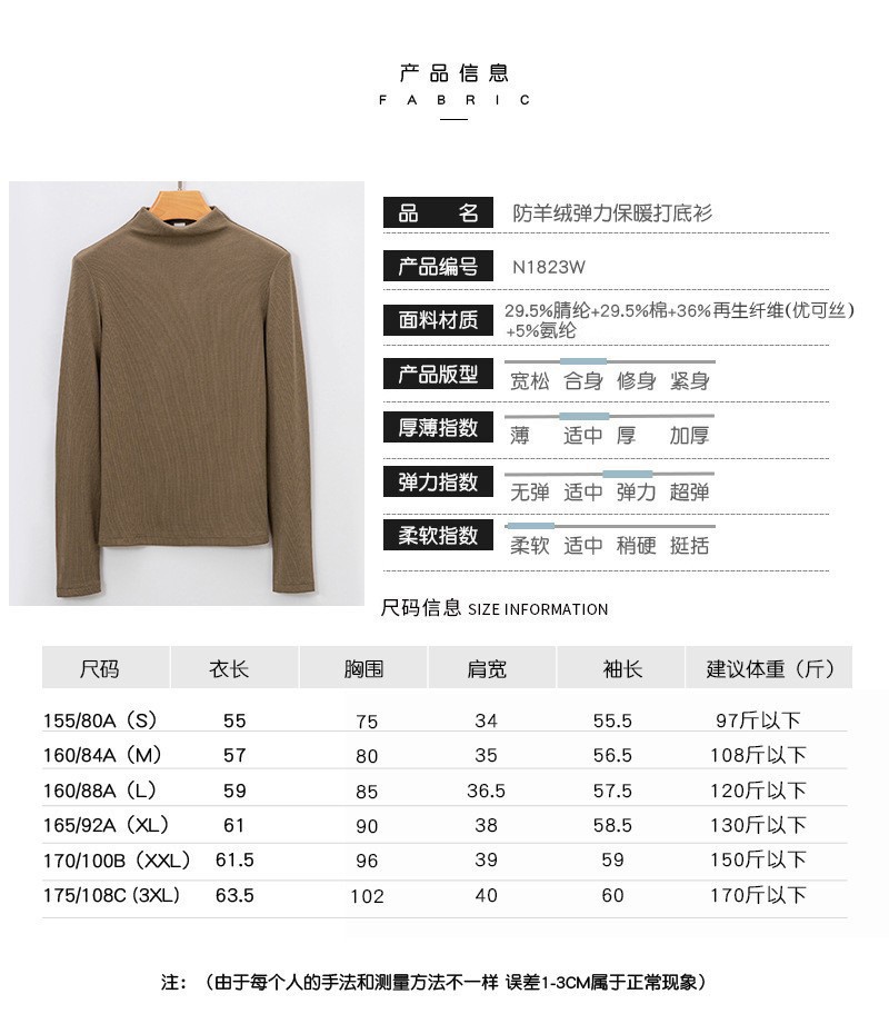 岸纾 精仿羊绒高弹力保暖女款打底衫(多色可选)