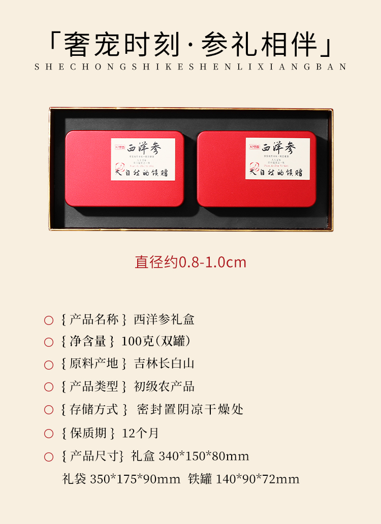 杞里香100g(2罐)礼盒装0.8-1.0cm西洋参、0.6-0.8cm、1.0-1.2cm西洋参礼盒礼盒礼品送礼