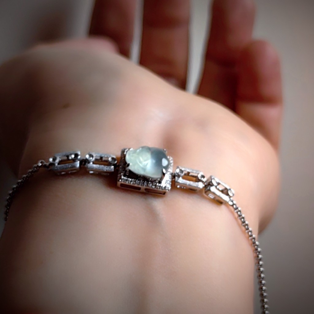 这条手链上冰种小貔貅可爱又冰透。将翡翠的高冷和18K喷砂金属风格完美柔和,感觉挺酷的。在这个适合出游的季节,这是一件可以拿捏住气质的手链。