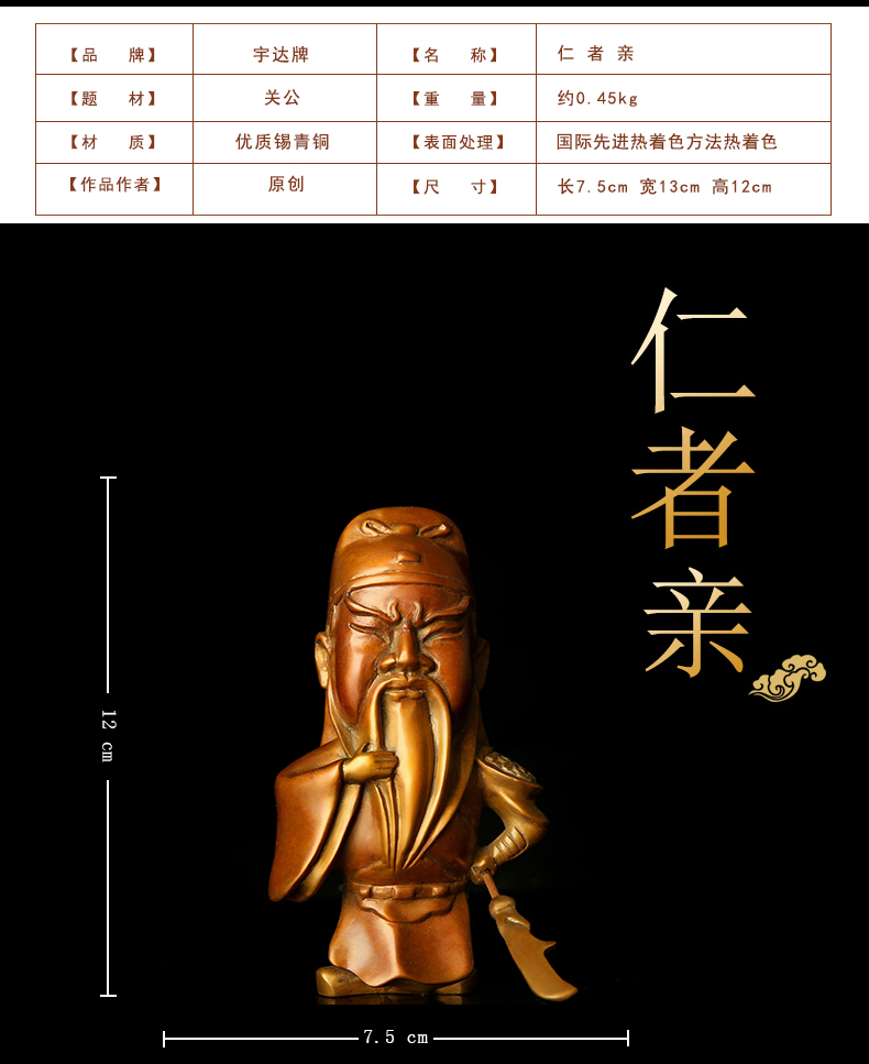 宇达青铜全铜摆件《卡通关公 萌化众生》创意 公仔 工艺饰品摆件