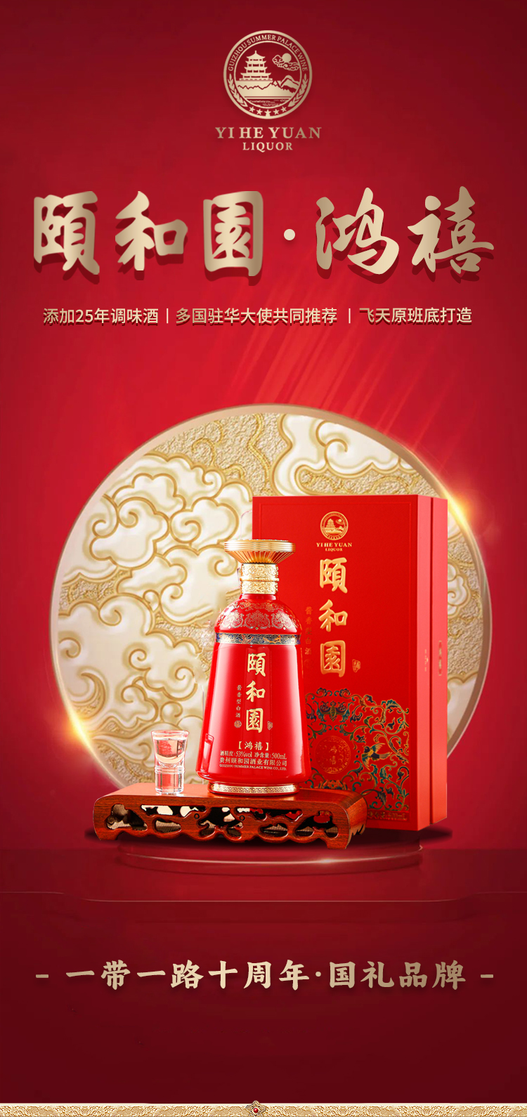 【一带一路十周年·国礼品牌】颐和园·鸿禧酒 两位大师把关酒体质量 酱香型白酒 53%vol