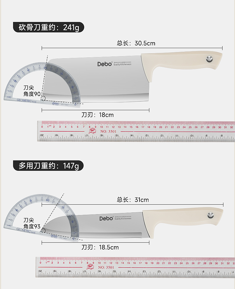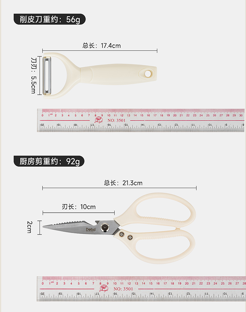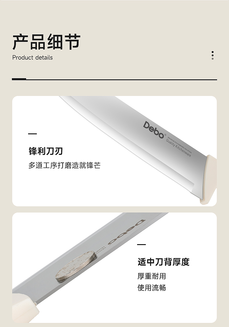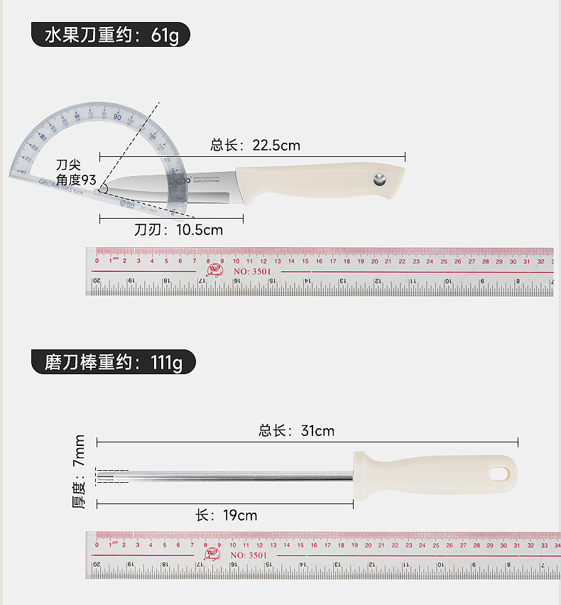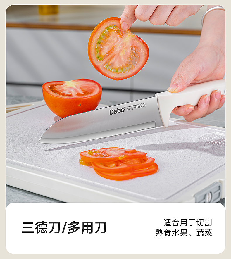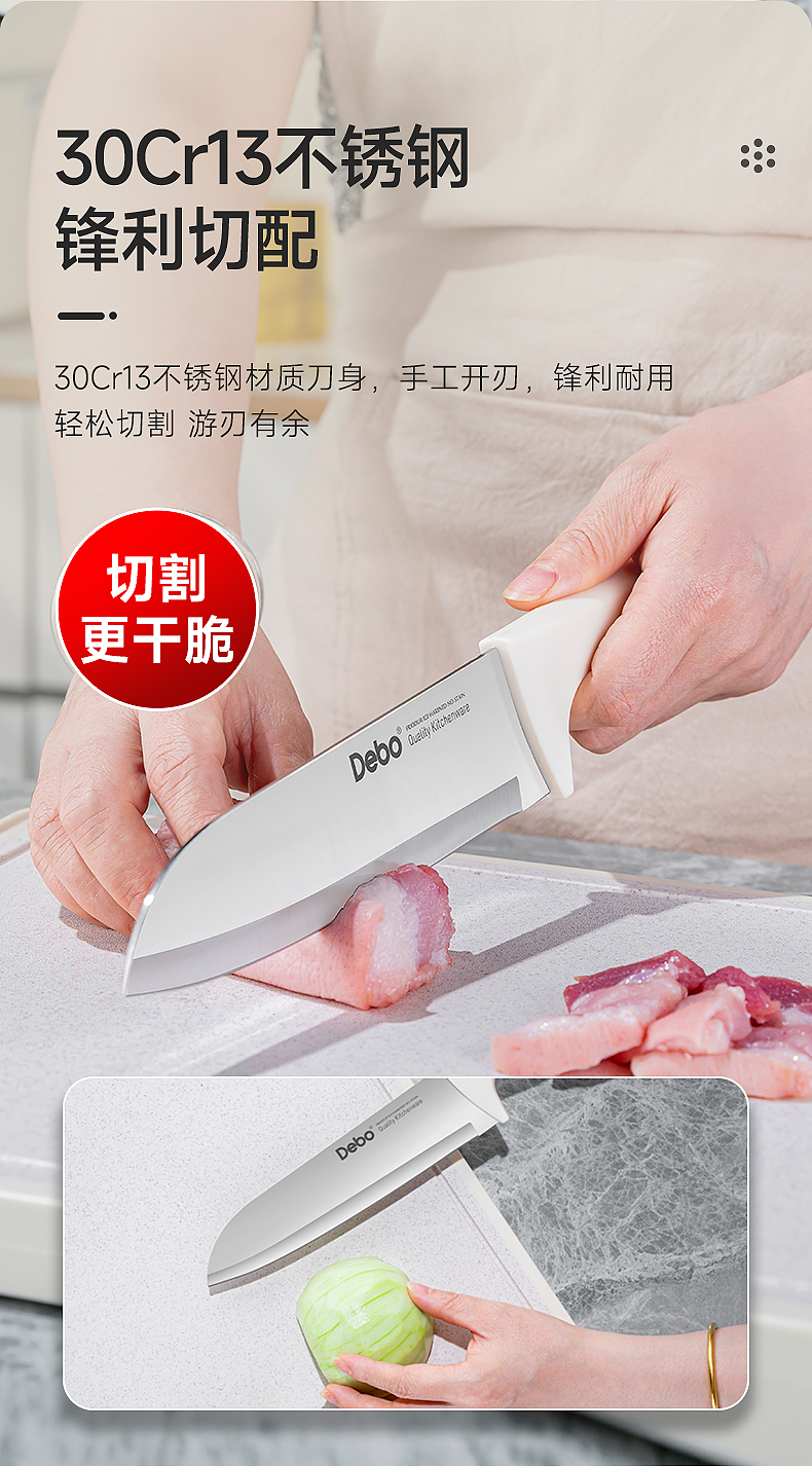 配置:收纳座*1、砍骨刀*1、多用刀*1、水果刀*1、厨房剪*1、磨刀棒*1、瓜刨*1