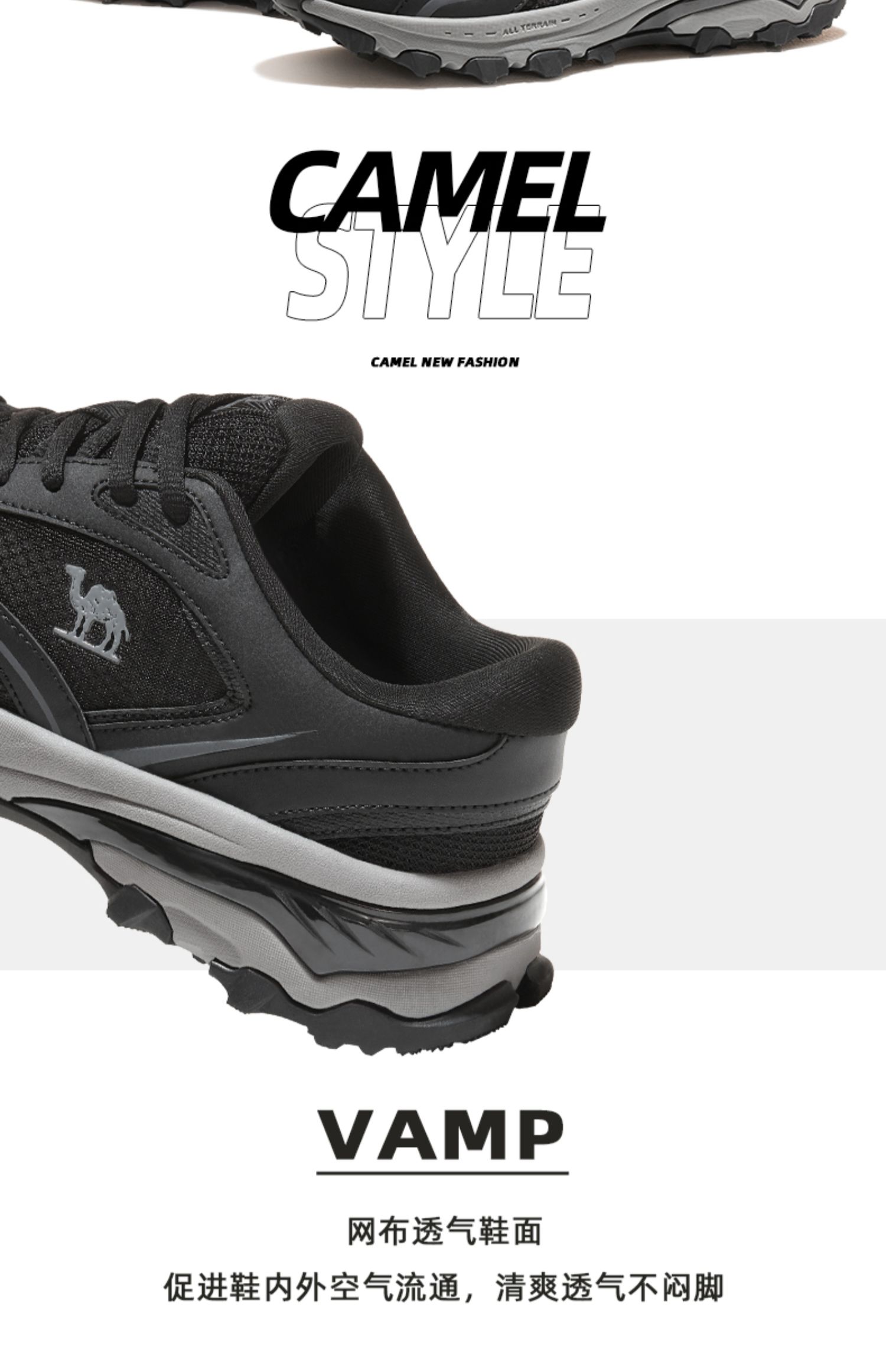 【山系】骆驼复古运动休闲鞋男2025春新款时尚网面透气缓震女鞋 X13S097020_X23S097017