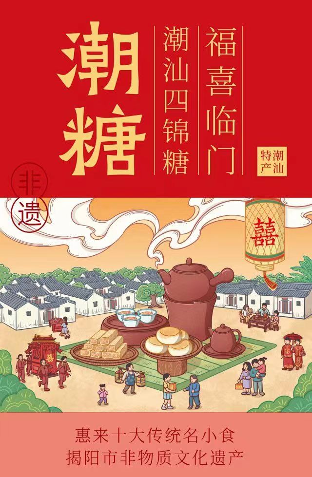 【年货节特惠】大吉物食 潮糖福喜临门潮汕 四锦糖 椰丝味软糖+黑芝麻味软糖+仁香糖 +芝麻明糖各*3 220g