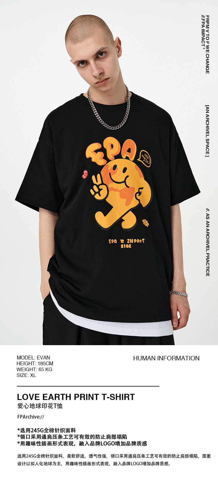 FPA(VENGETICE) 爱心地球印花T恤 国潮宽松休闲嘻哈图案男