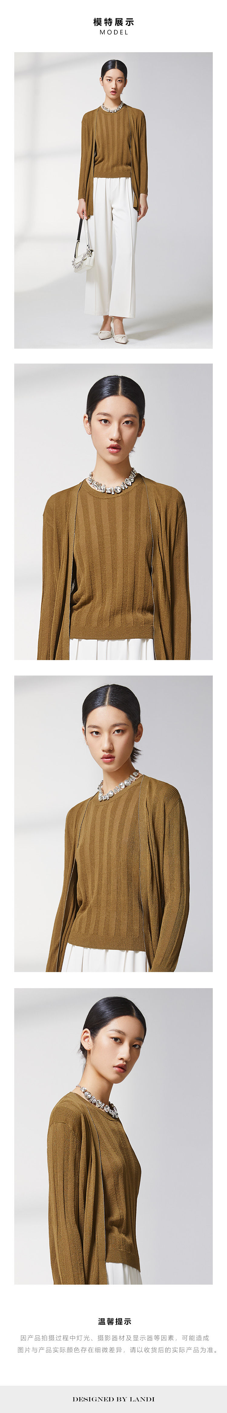 蓝地抽条圆领短袖针织衫BLWCZ086000