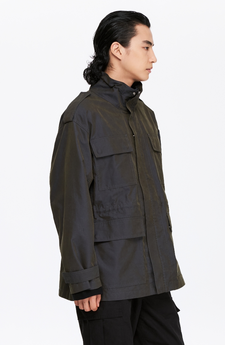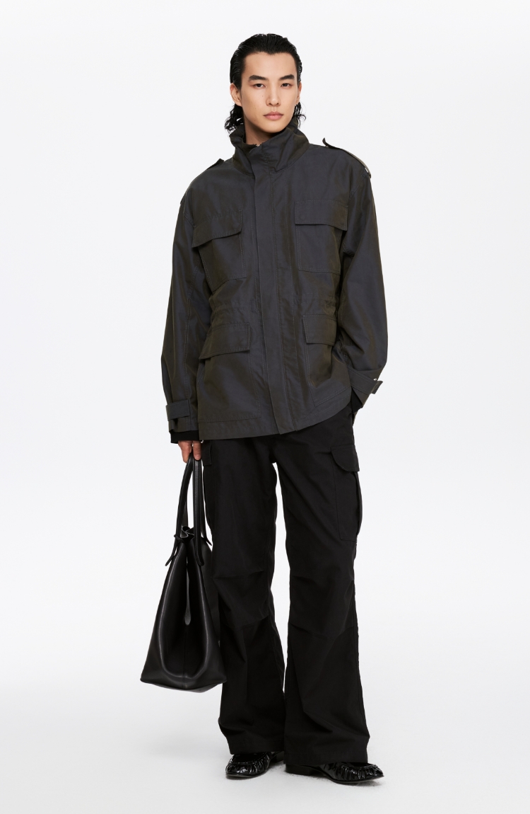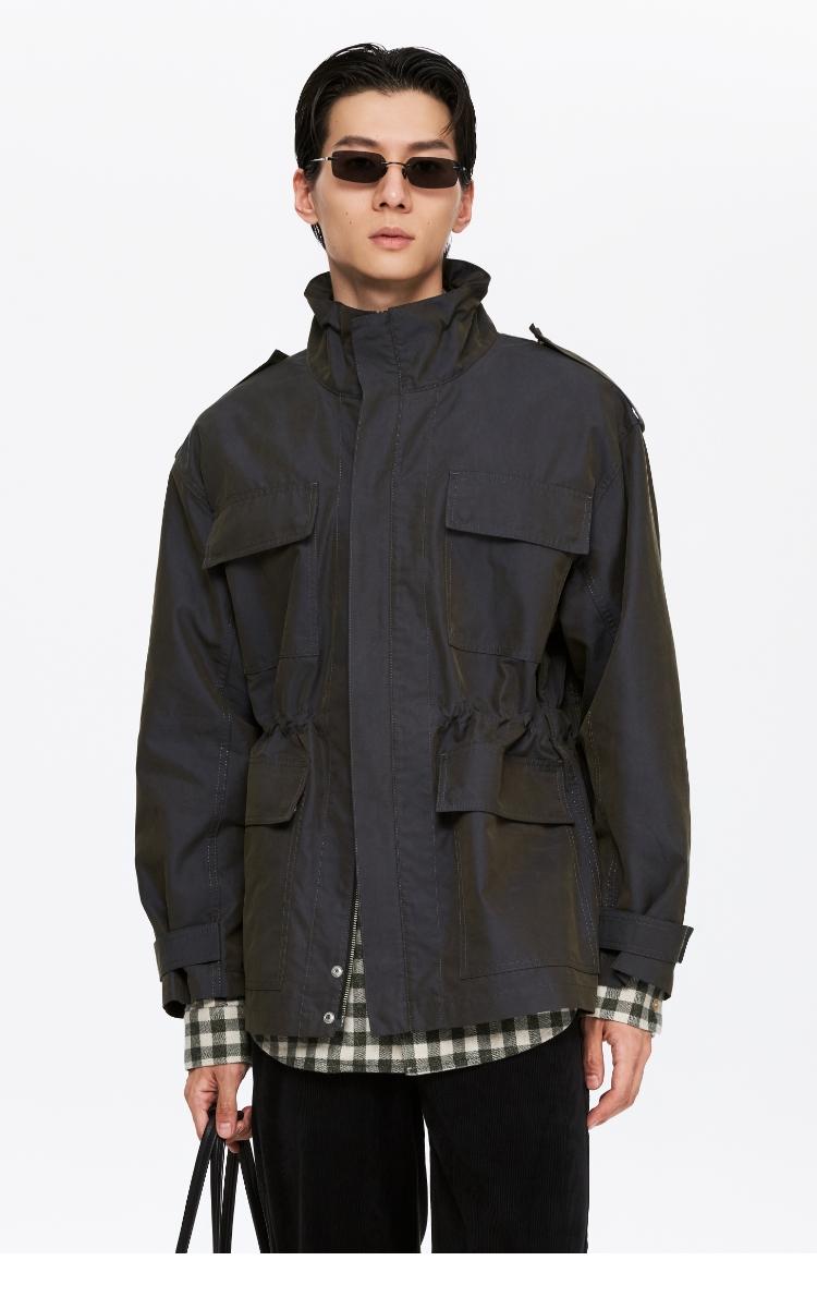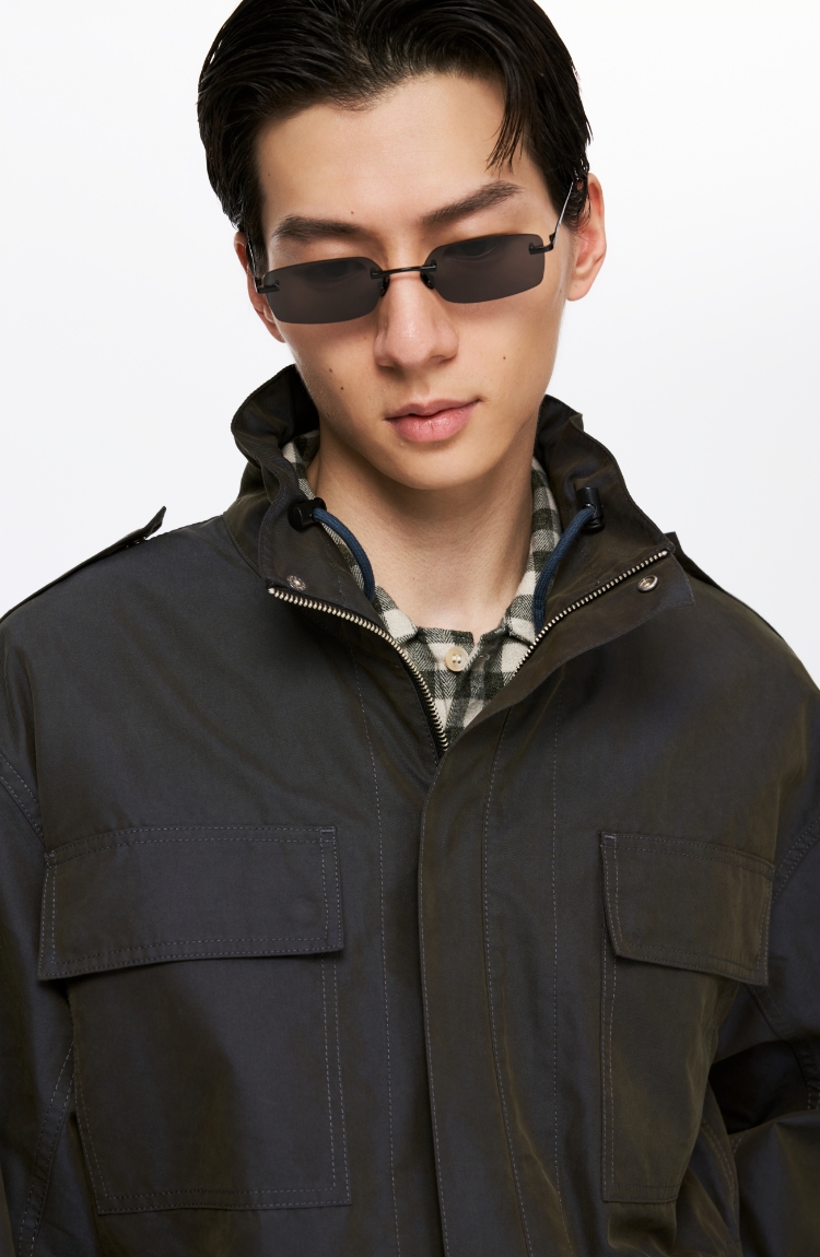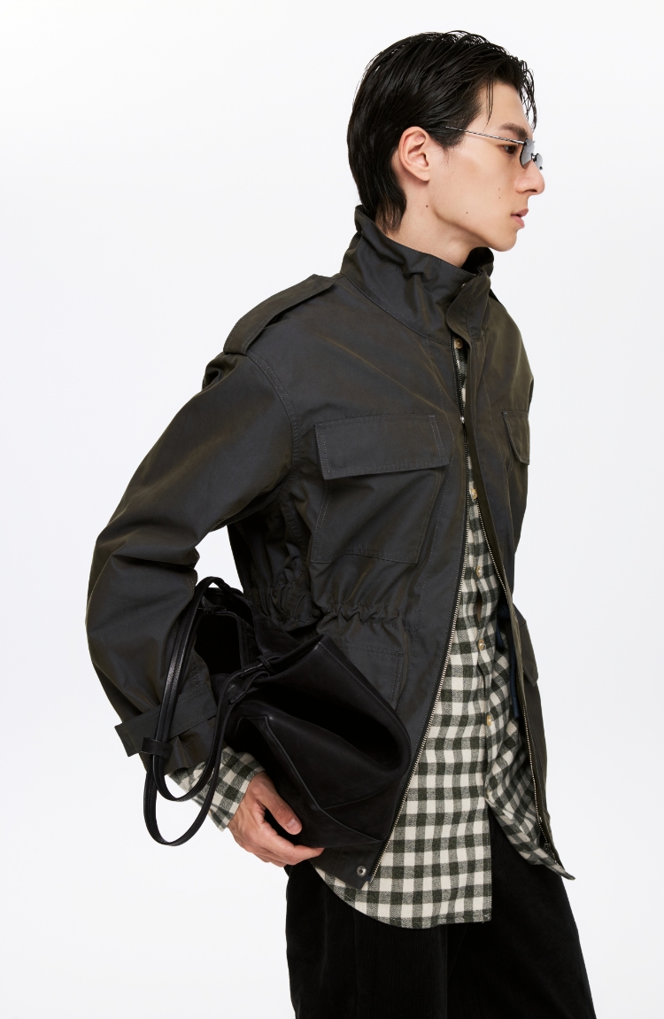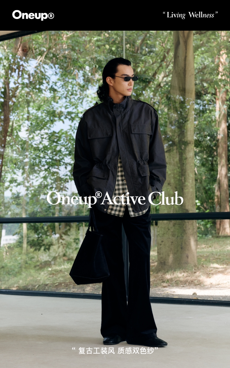 Oneup光泽感斜纹短款夹克