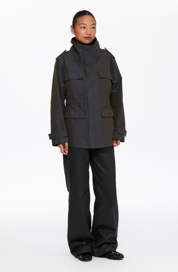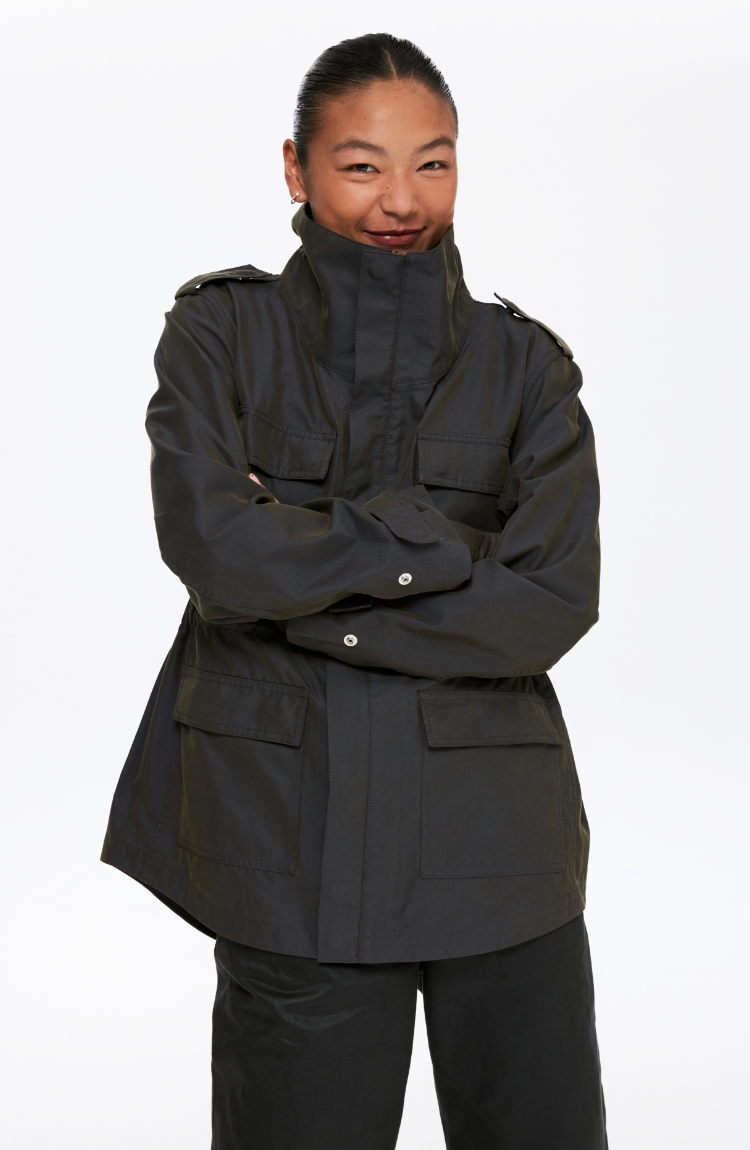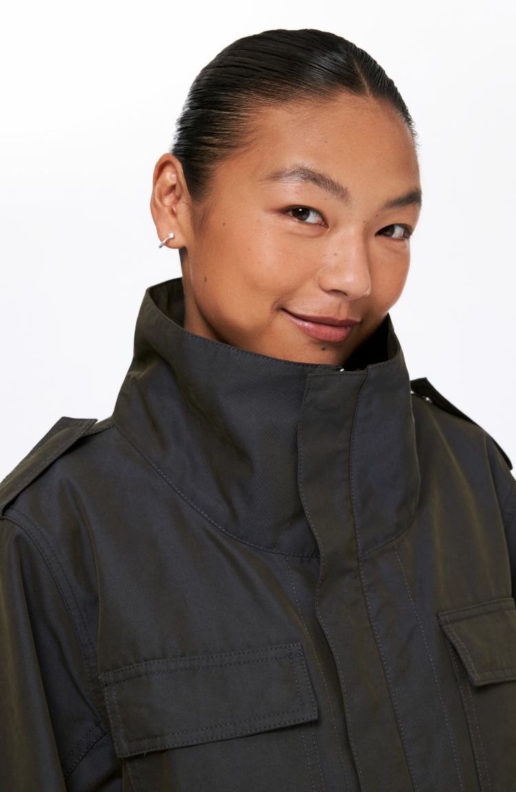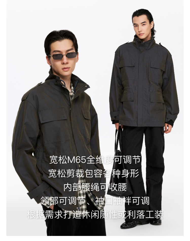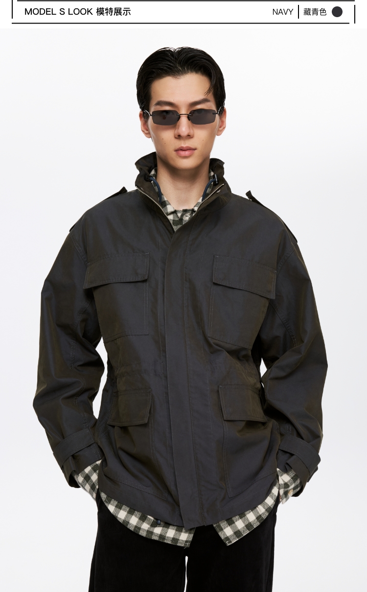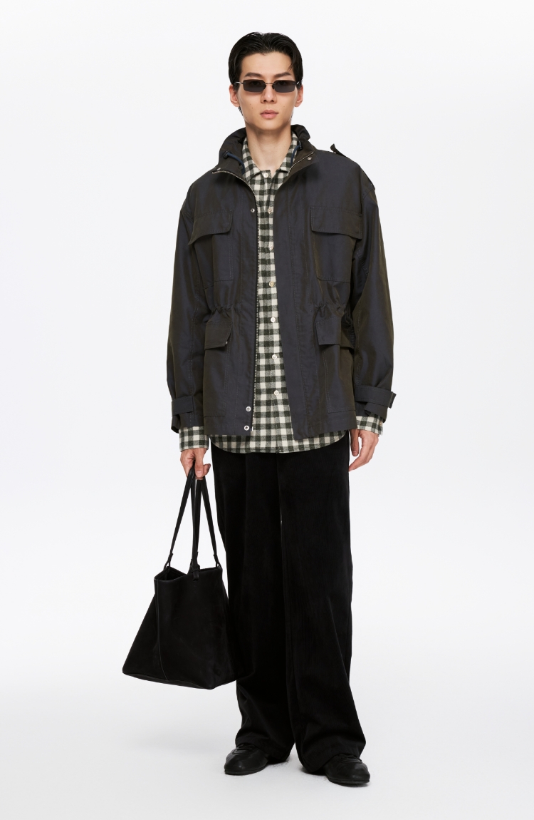 Oneup光泽感斜纹短款夹克