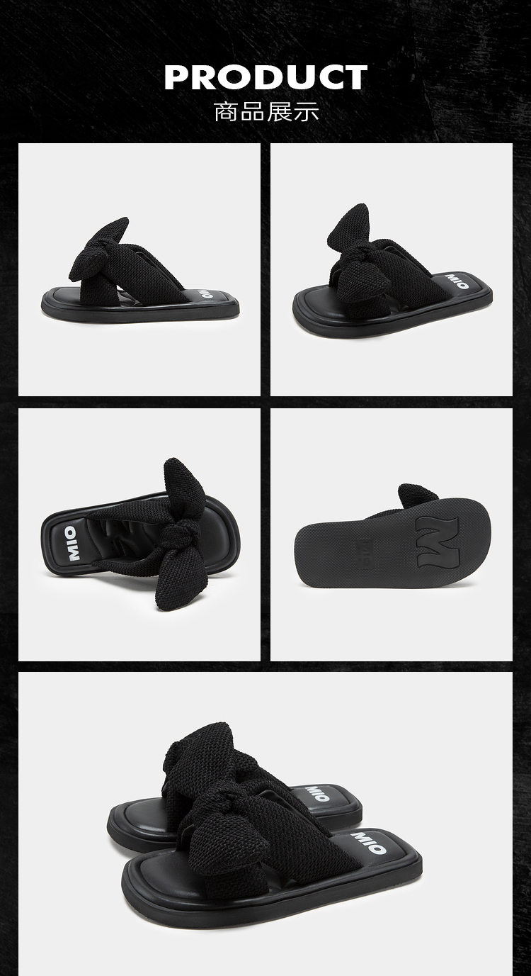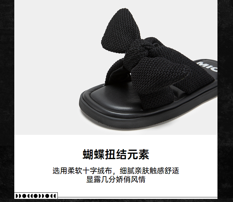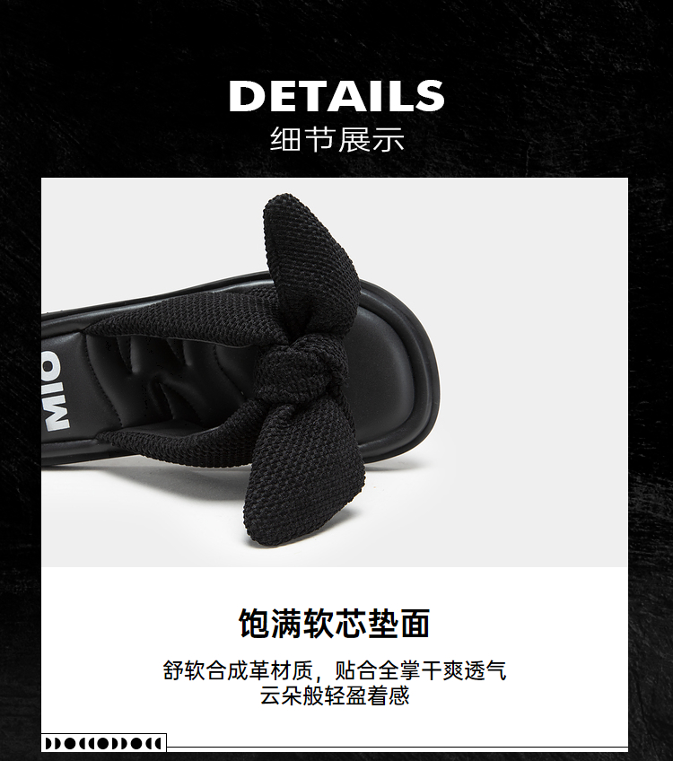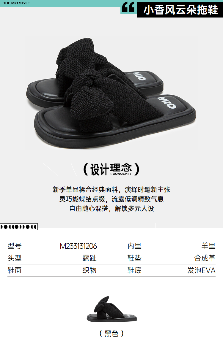 MIO米奥夏季韩版平底拖绒布蝴蝶结一字拖小香风舒适云朵拖鞋女M233131206