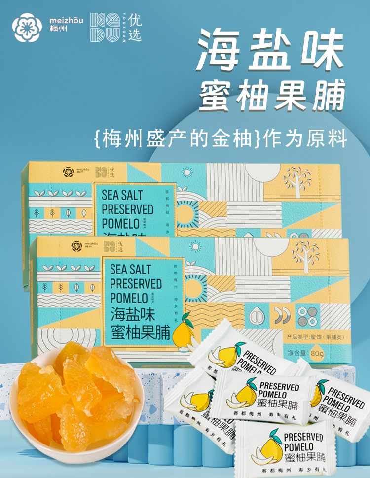 【梅州帮扶】客都农创丨海盐味蜜柚果脯 80g*2盒