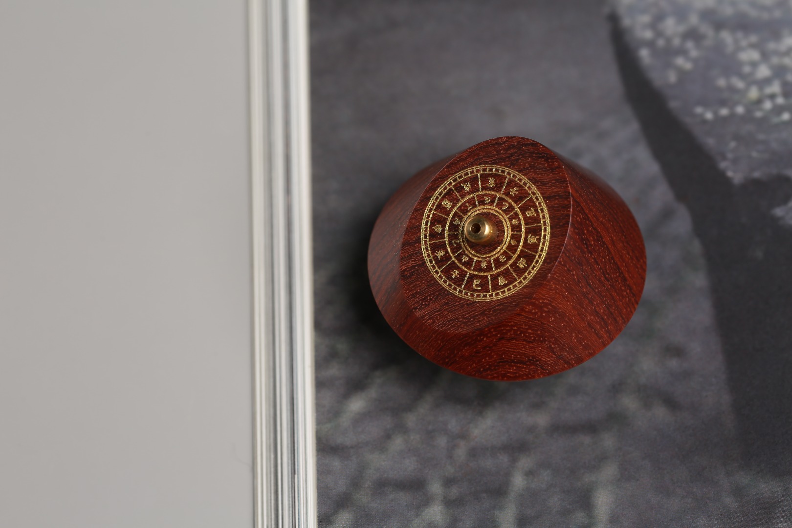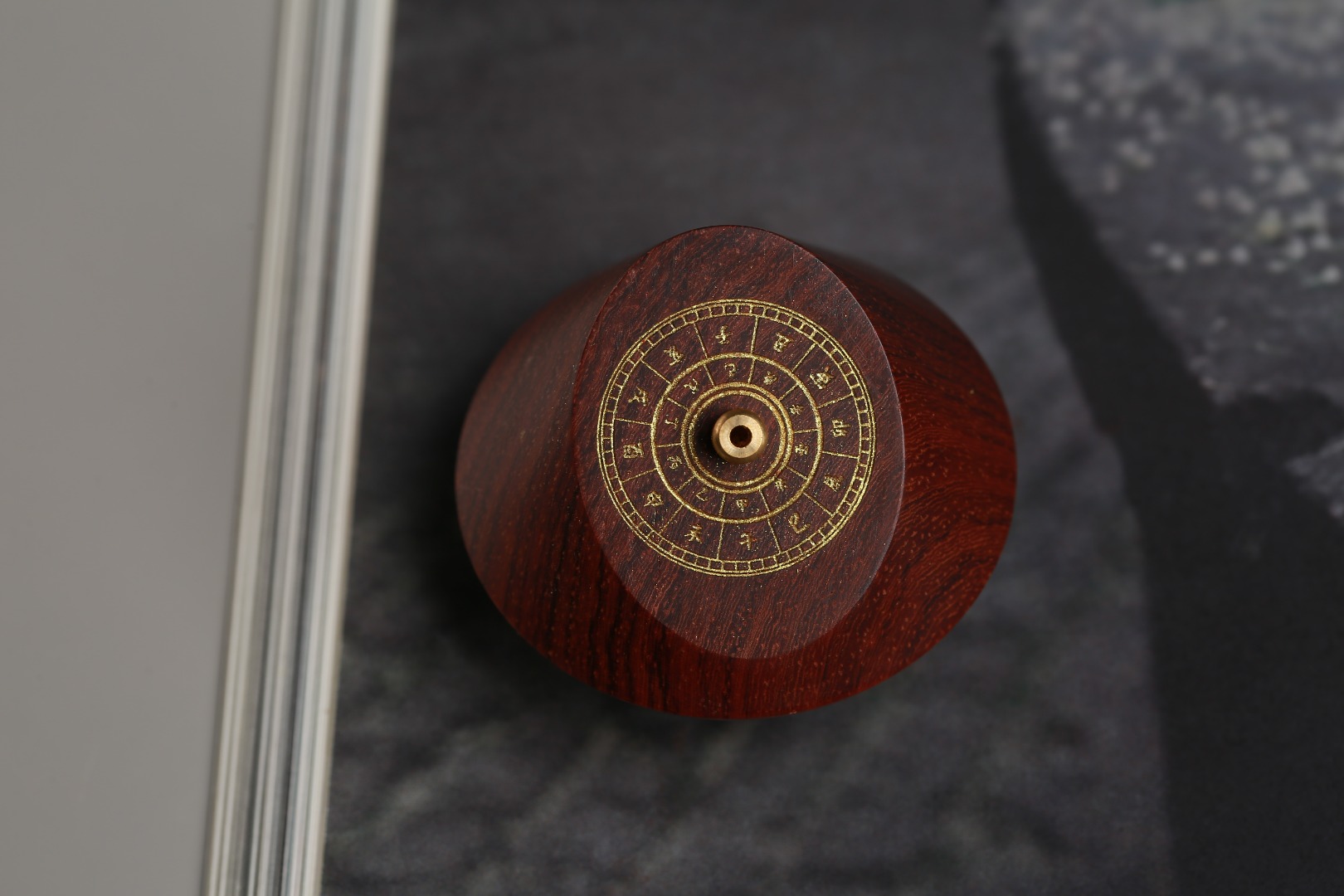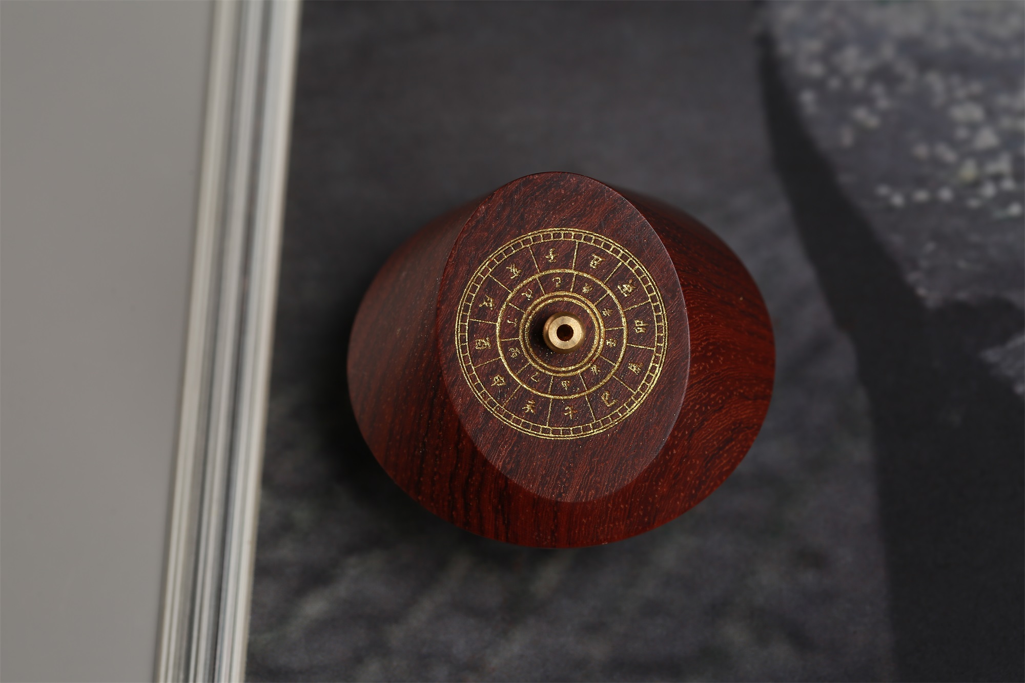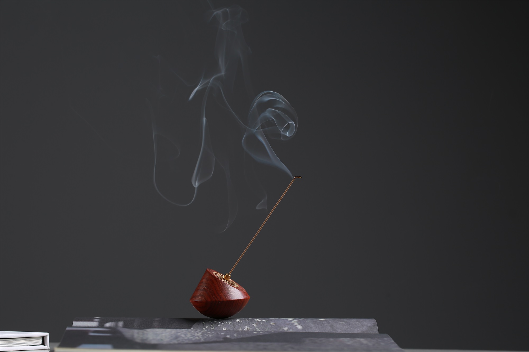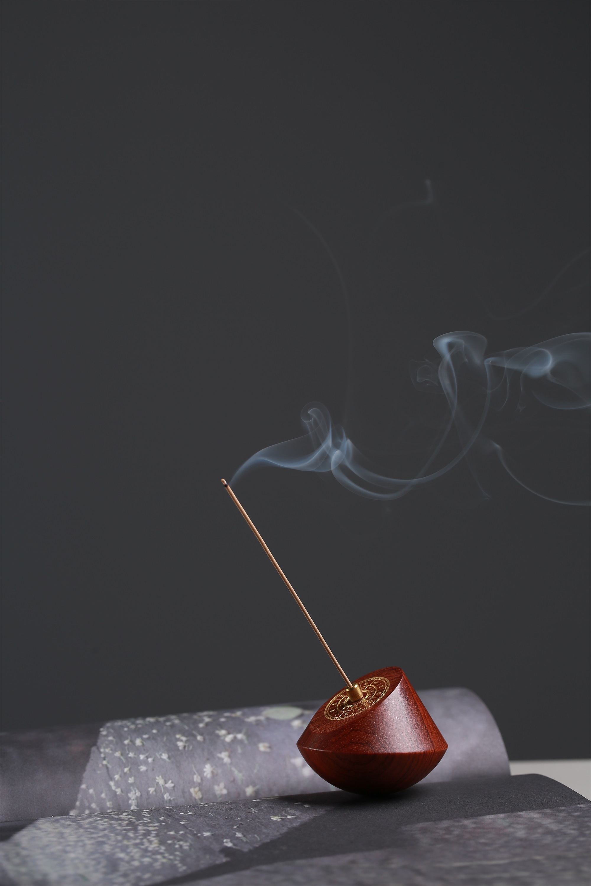 周朝时期,民间就开始用日晷计时,距今已有三千多年的历史。香器取传统日晷为灵感进行设计,以缅甸黄花梨精巧制作,晷盘上标注有地支十二时辰,线香插入后,除了领略香品本身的氤氲气息,还能读取到行走于掌中的时间,日升日落,周而复始。
