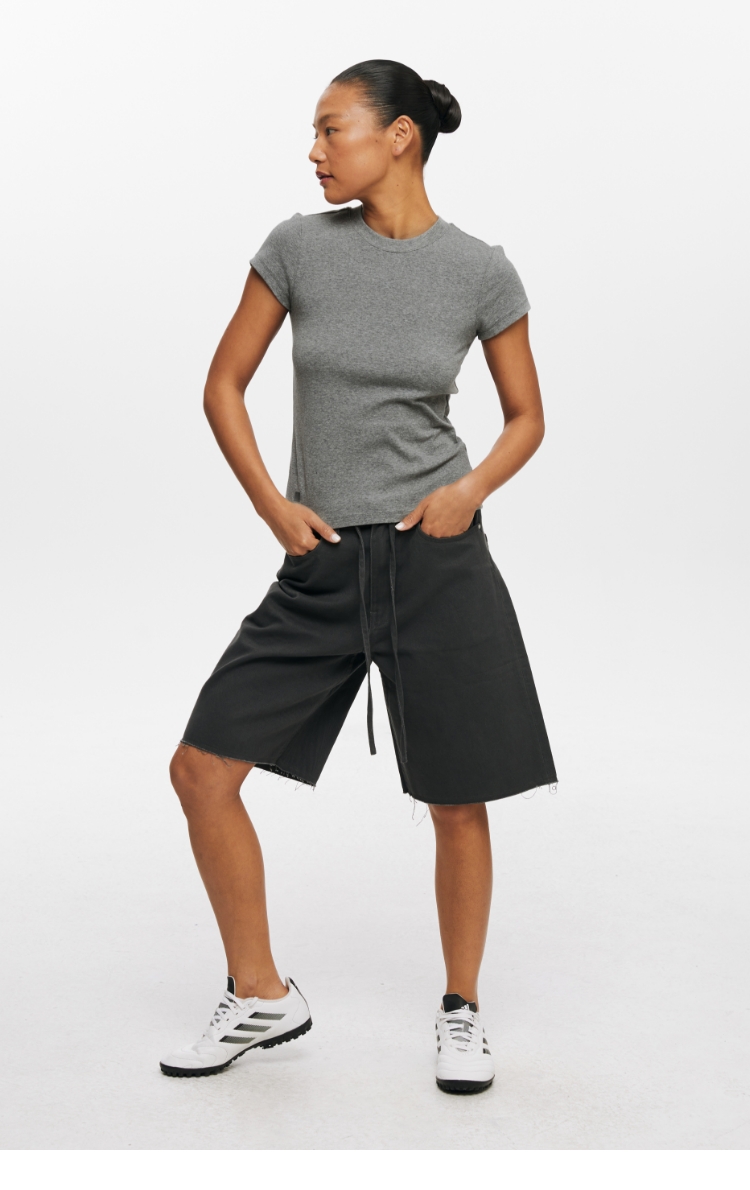 Oneup亚麻卷边针织正肩短袖