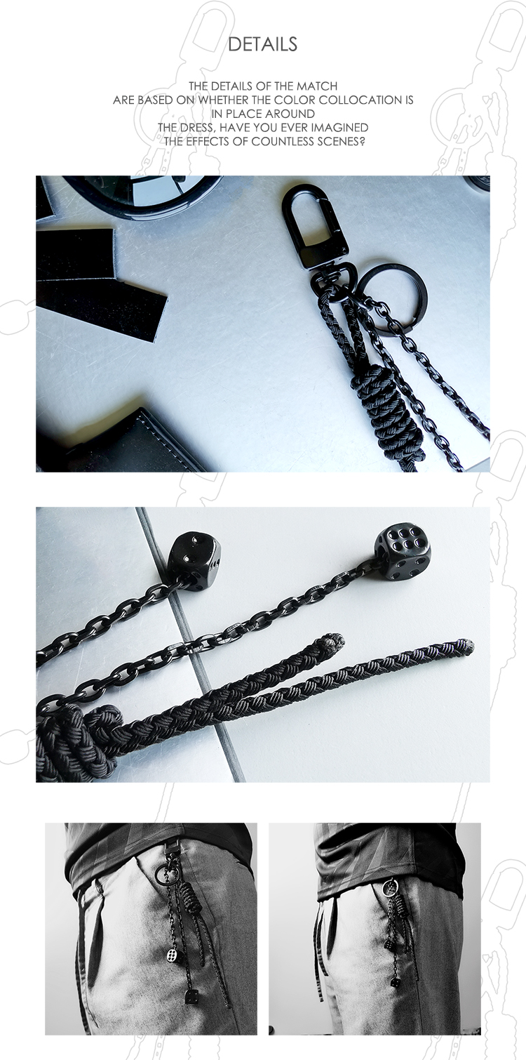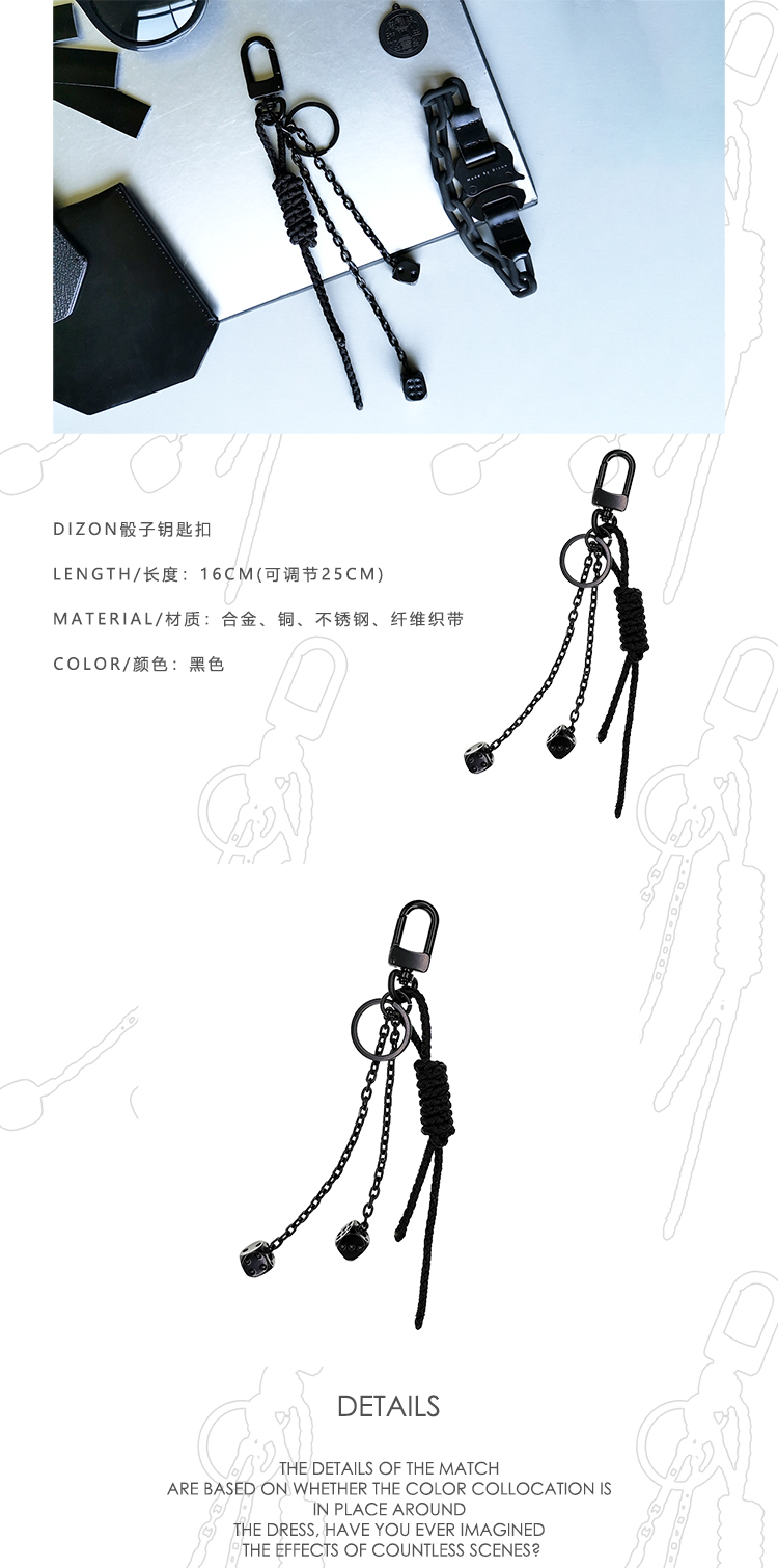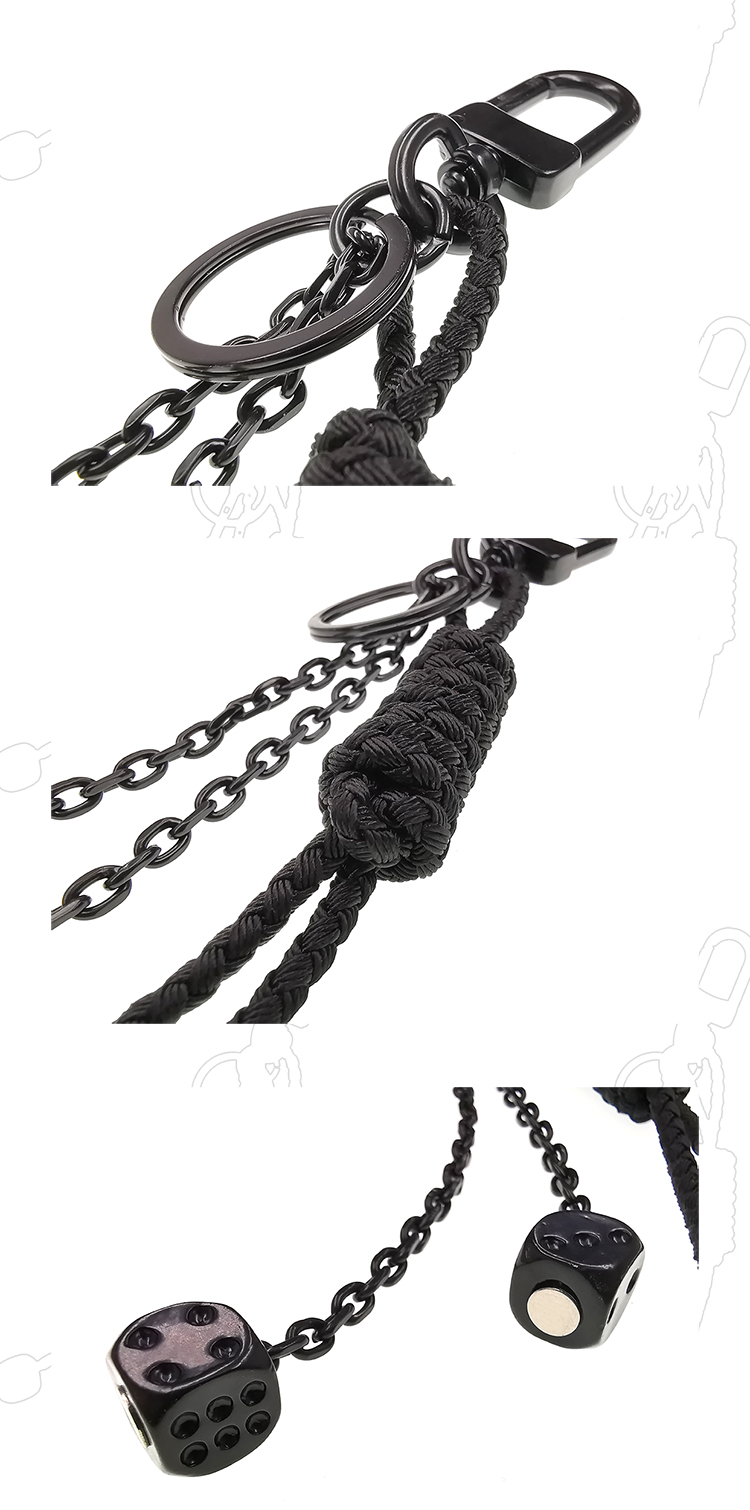 DIZONACC 骰子钥匙扣 黑色锁链式链编织挂饰 男士车匙潮流吊饰链