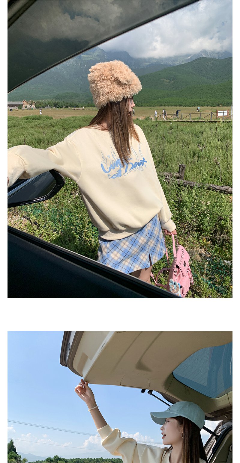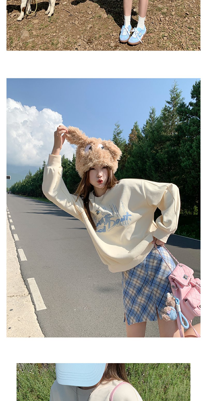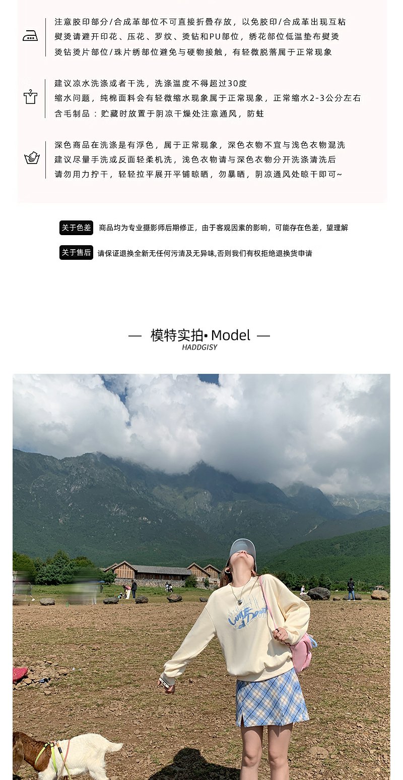 <曾小咸推荐>韩版休闲浅黄色字母刺绣圆领卫衣