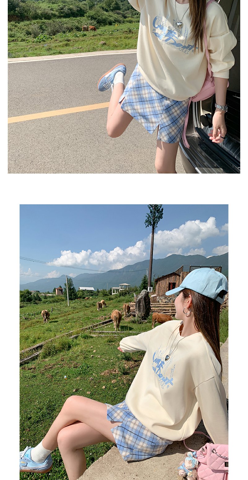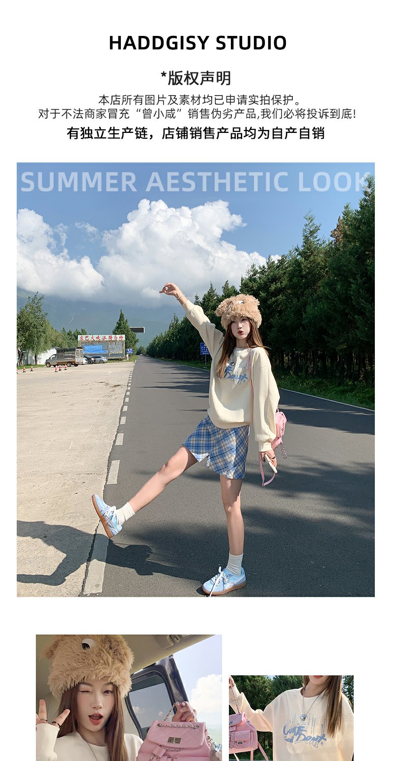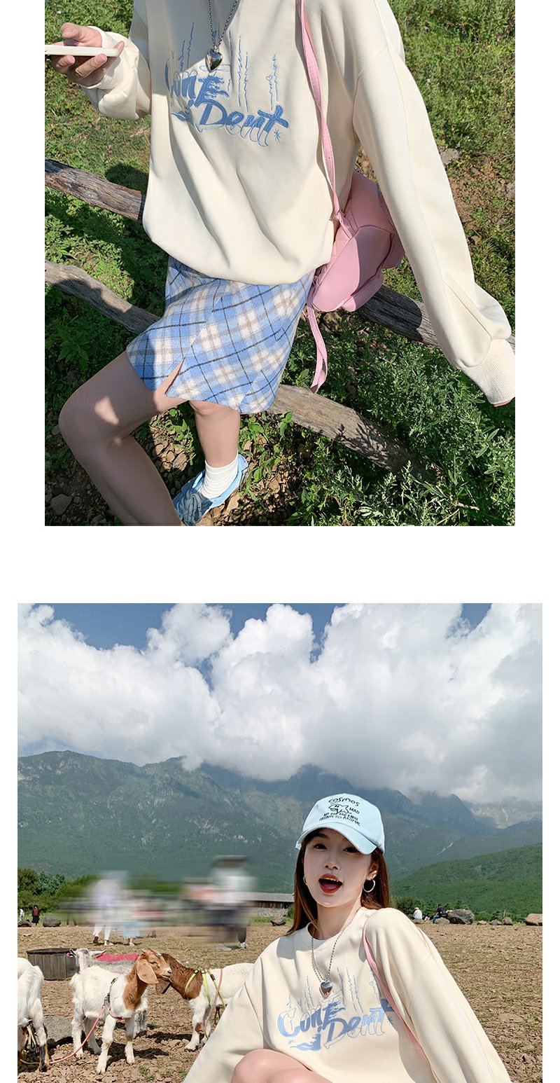 <曾小咸推荐>韩版休闲浅黄色字母刺绣圆领卫衣