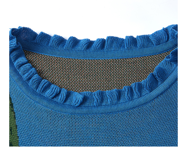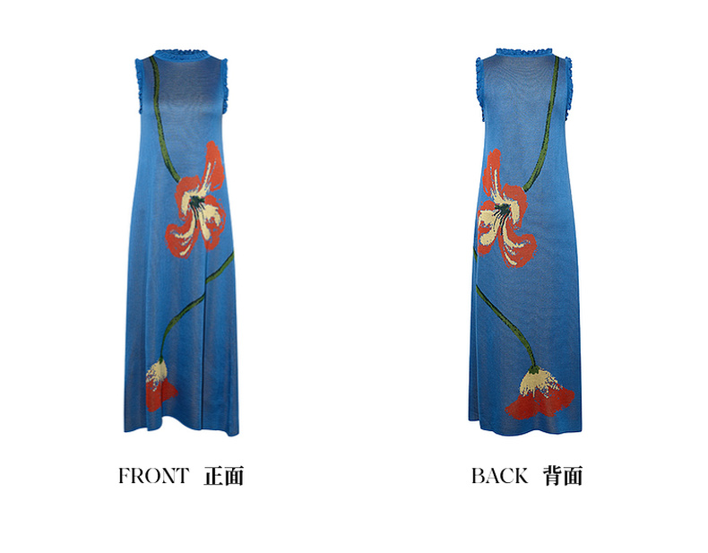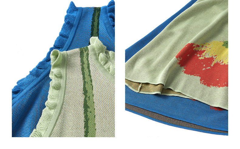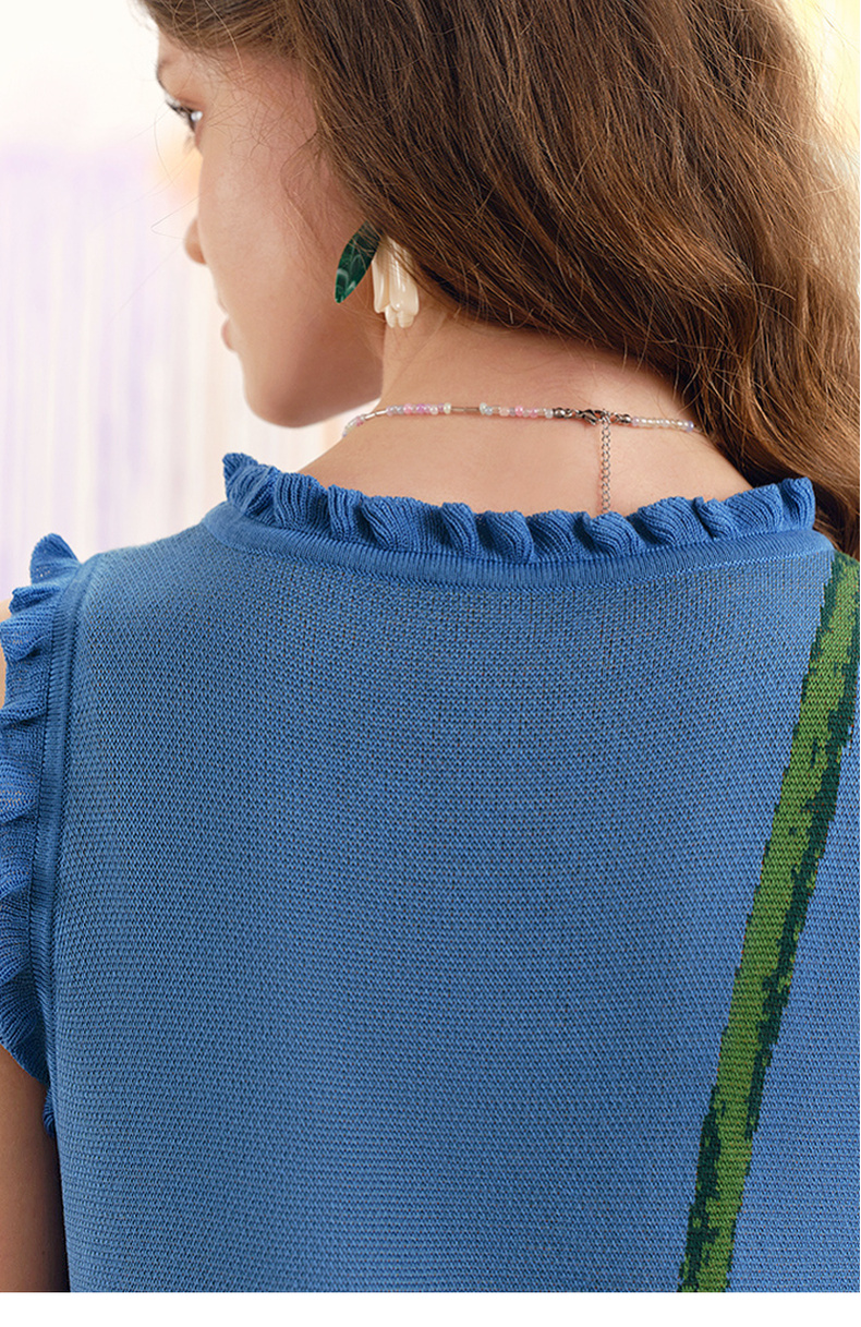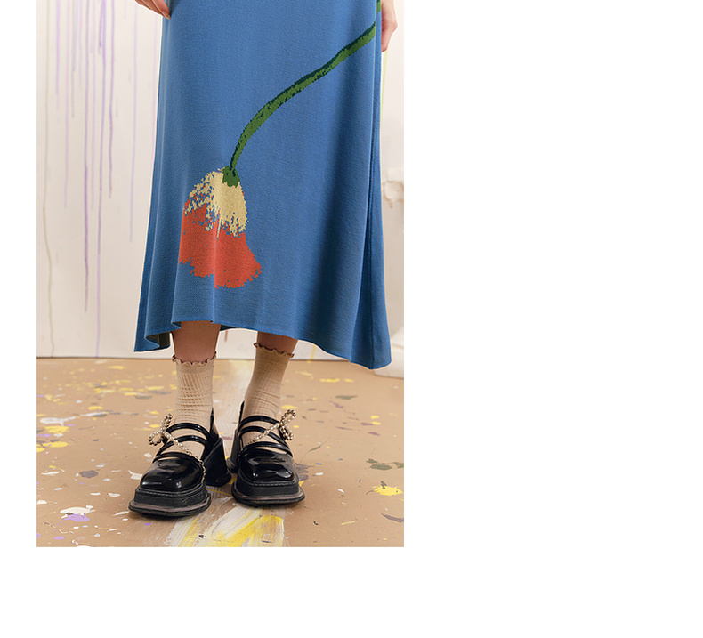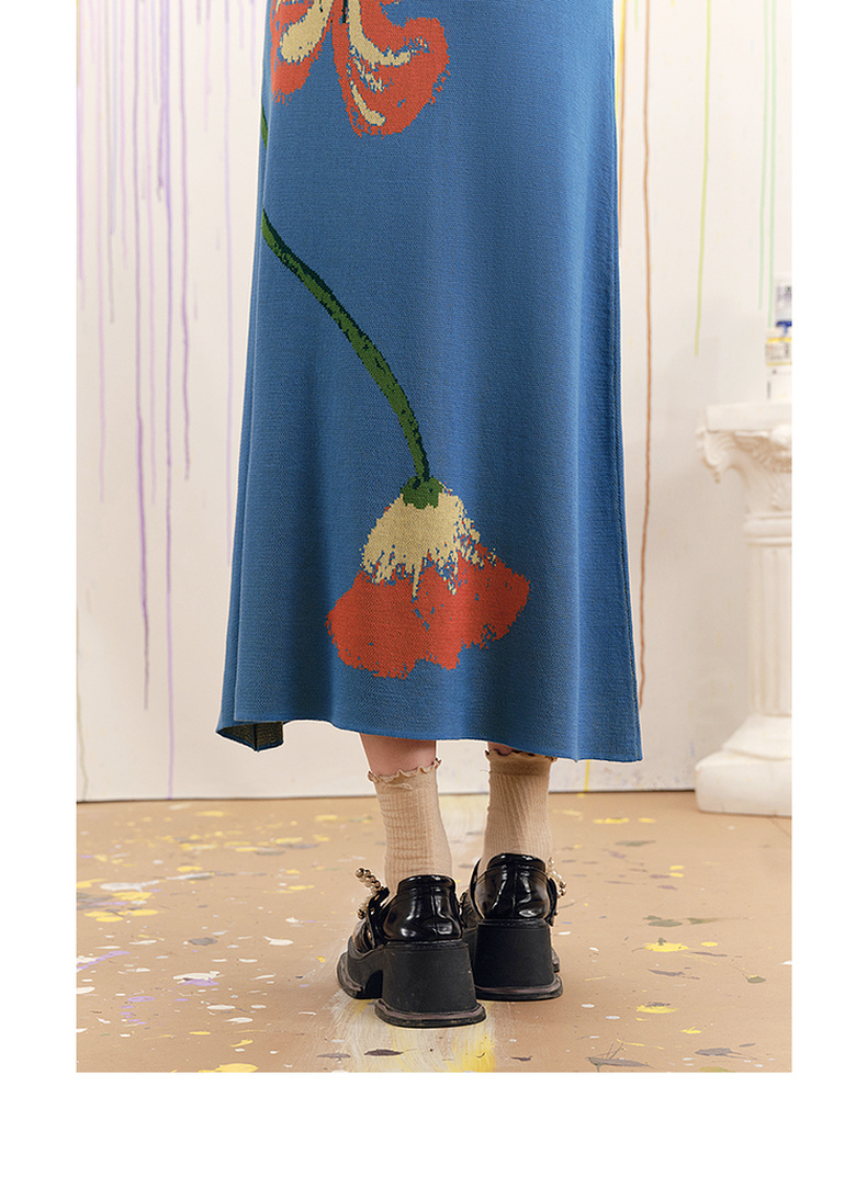 两三事梵高文艺红蓝色盘2025春季新款荷叶边花卉毛织背心裙连衣裙S25CLY314