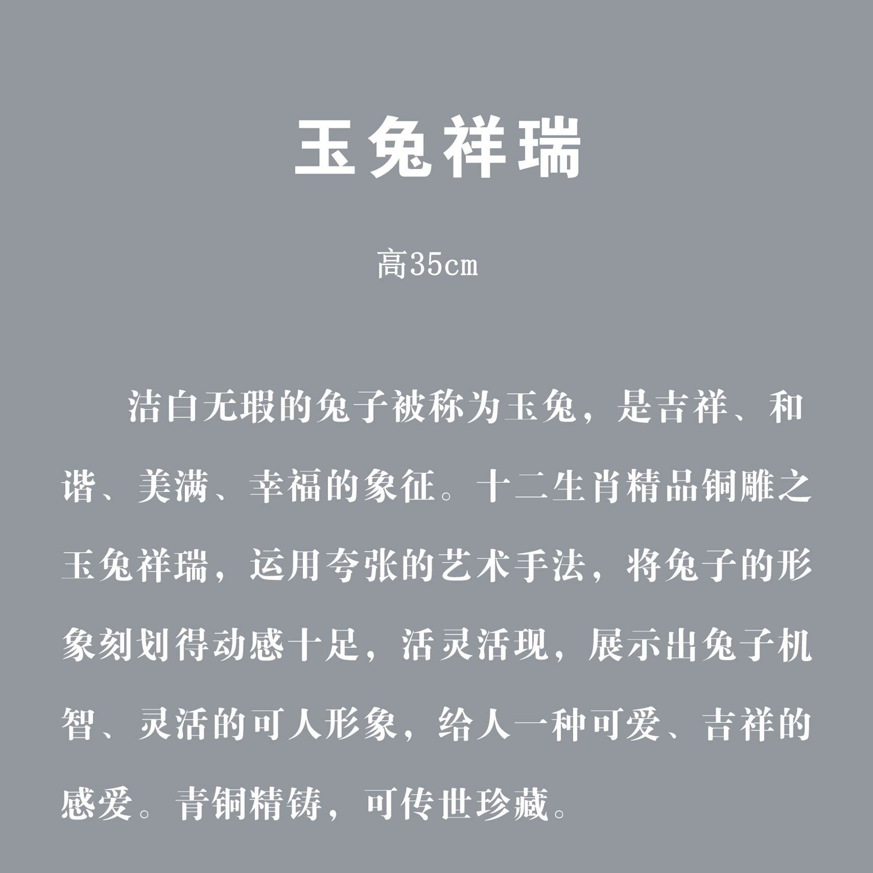 宇达青铜摆件 十二生肖兔《玉兔祥瑞》创意装饰 家居工艺摆件 高35cm