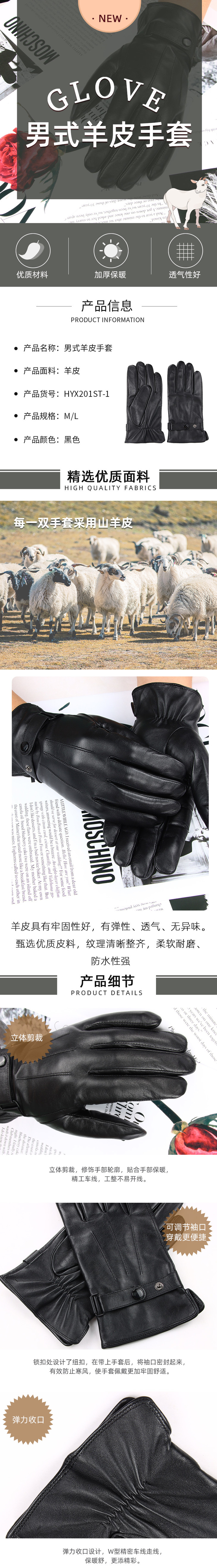 恒源祥男士(100%绵羊皮)羊皮手套HYX201ST-1