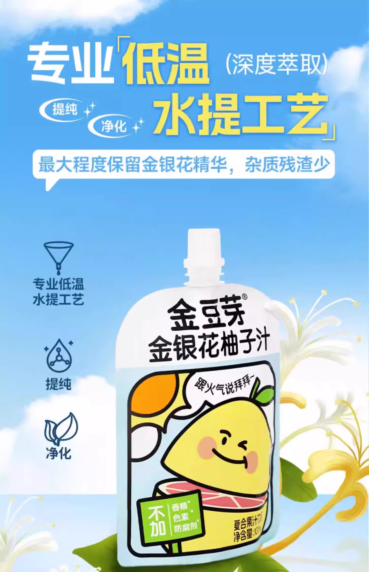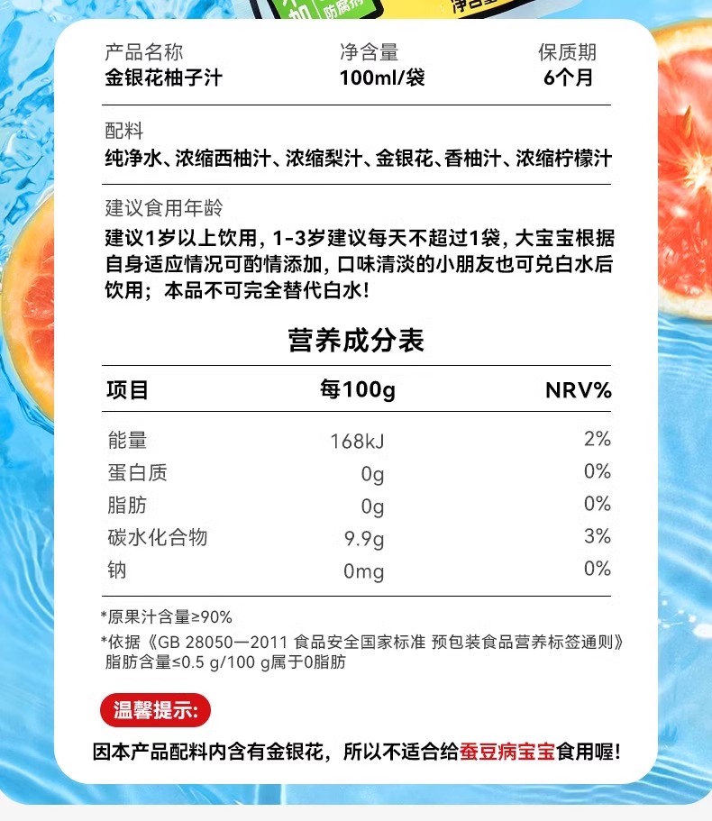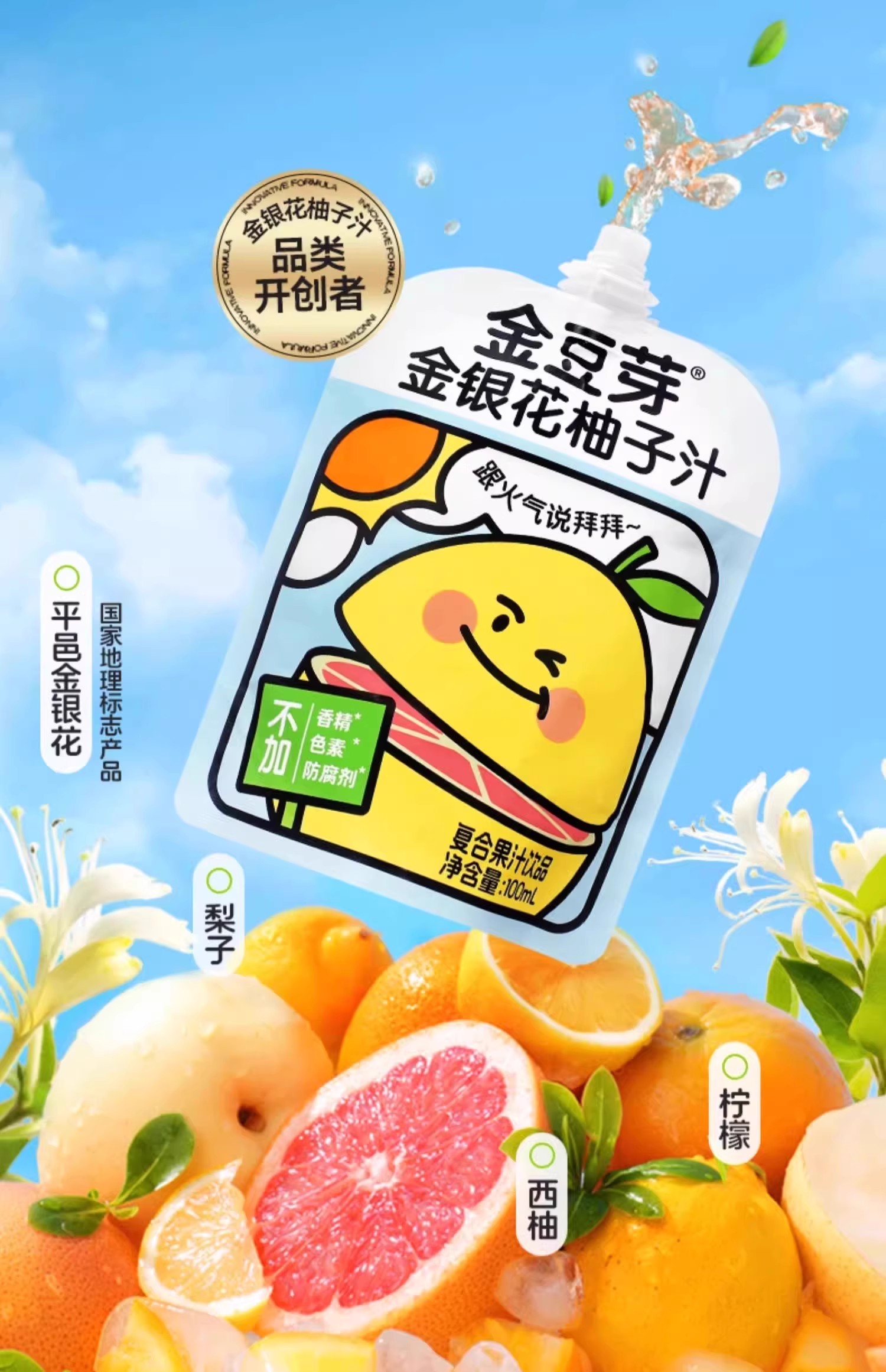 金豆芽-金银花柚子汁100ml 儿童成人下火果汁饮品
