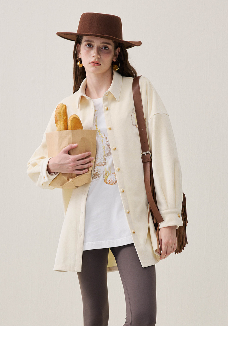 谜底大廓形衬衣长袖2025年冬季新品柔软温暖百搭衬衫女254MC1601