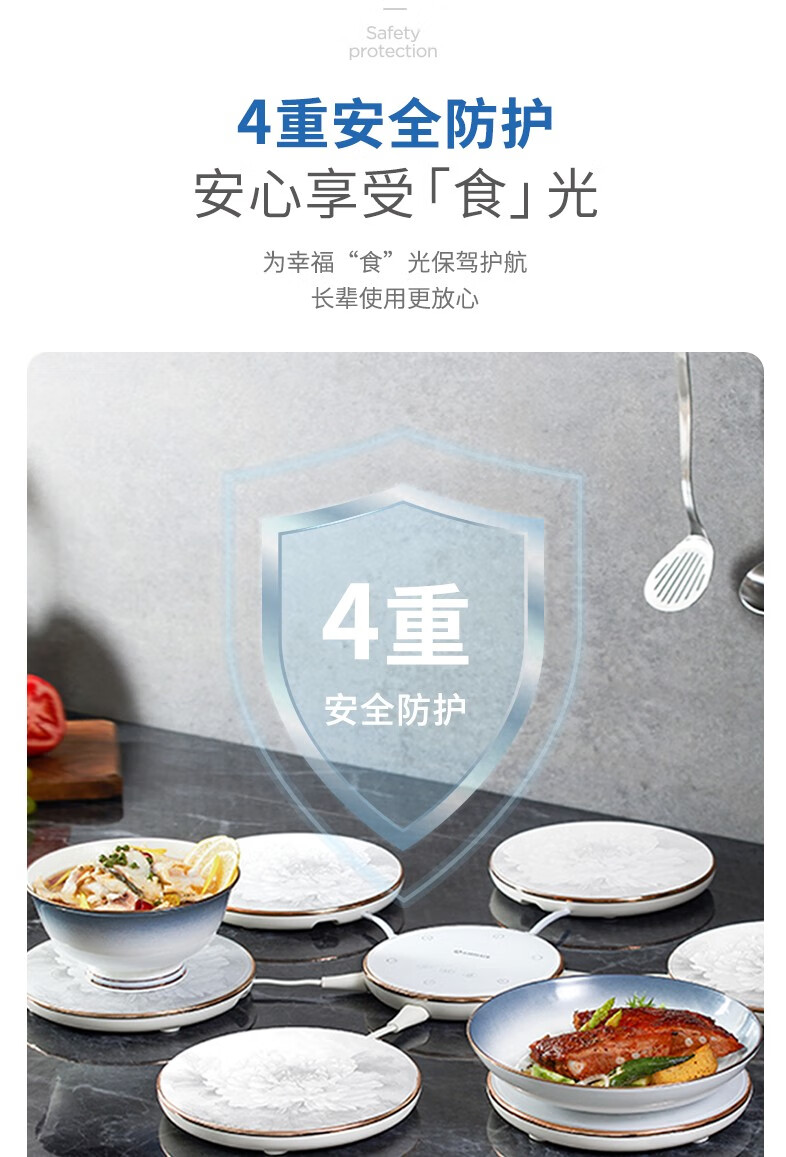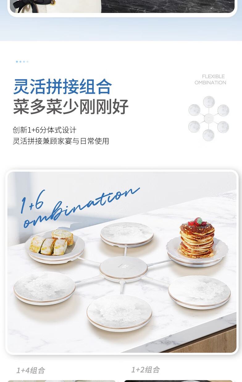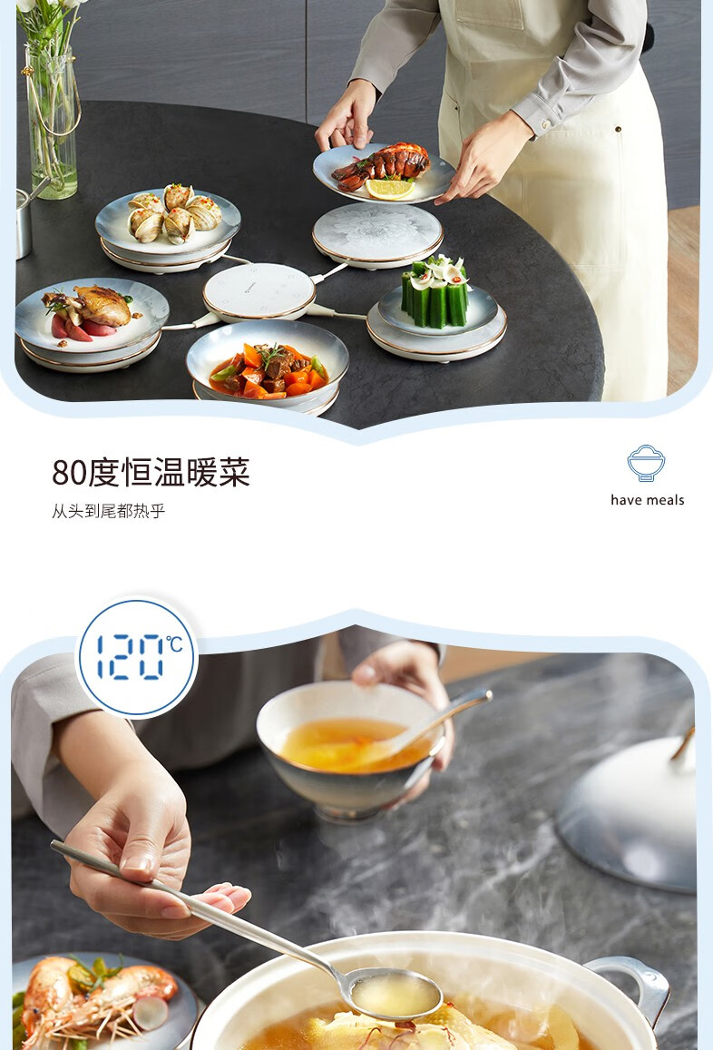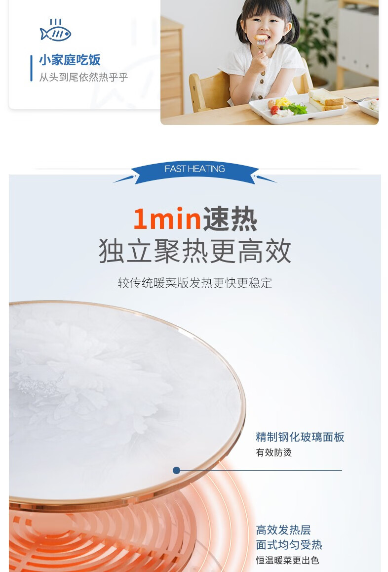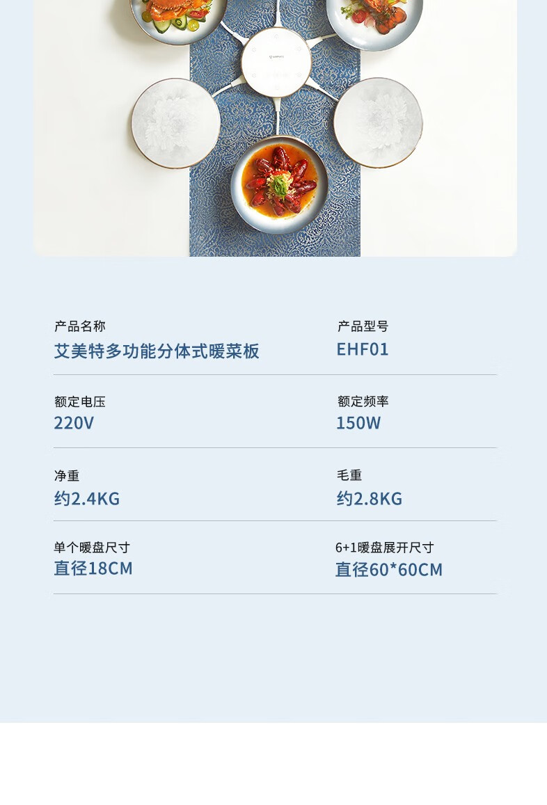 【小家电】艾美特(Airmate) 花开富贵分体组合式暖菜板热菜板多功能家用饭菜保温板可拆卸收纳圆形暖菜垫 分体式EHF01 HF