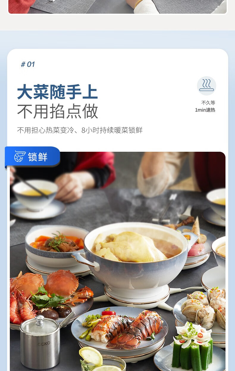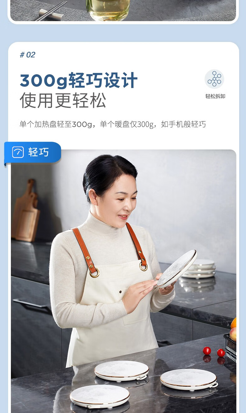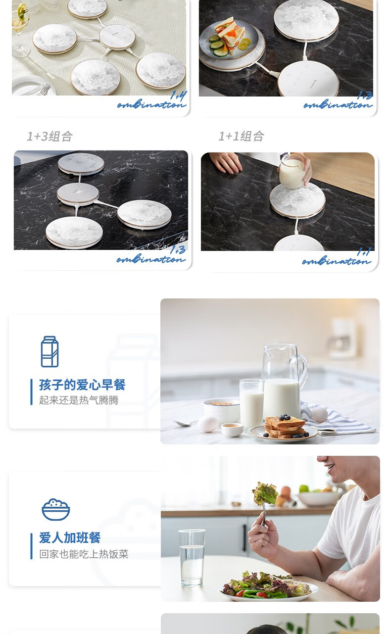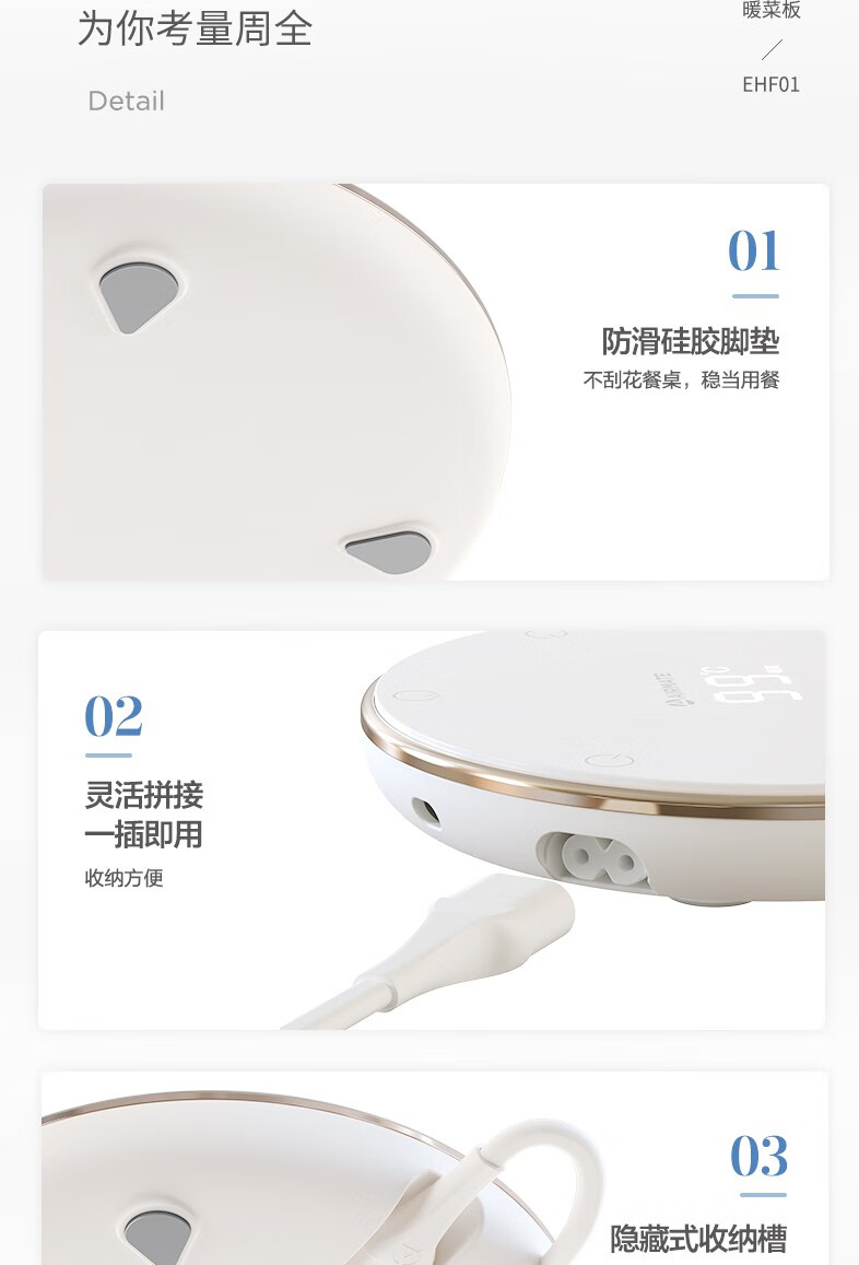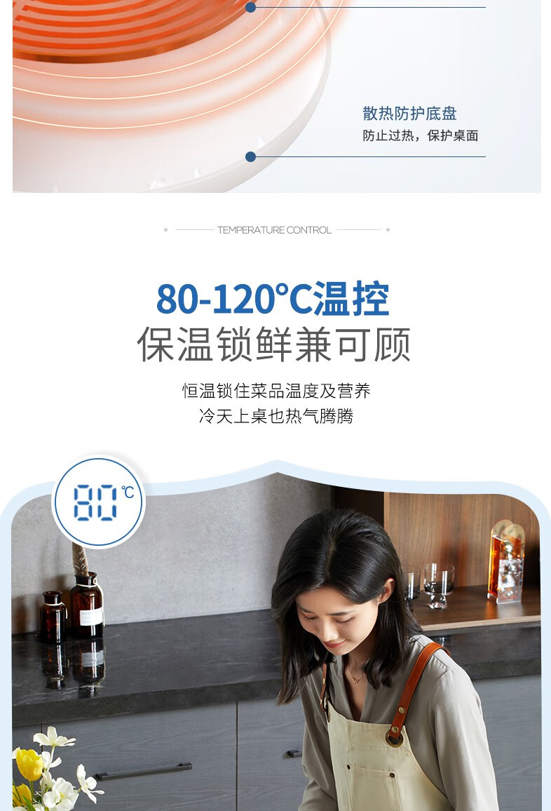 【小家电】艾美特(Airmate) 花开富贵分体组合式暖菜板热菜板多功能家用饭菜保温板可拆卸收纳圆形暖菜垫 分体式EHF01 HF