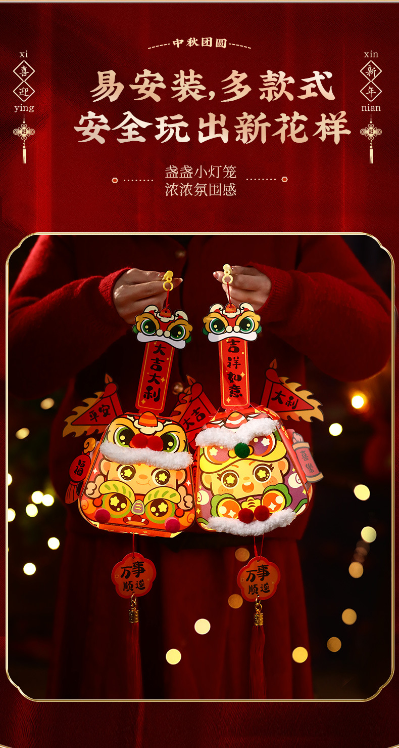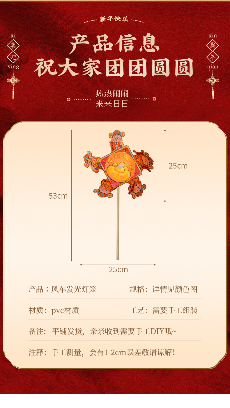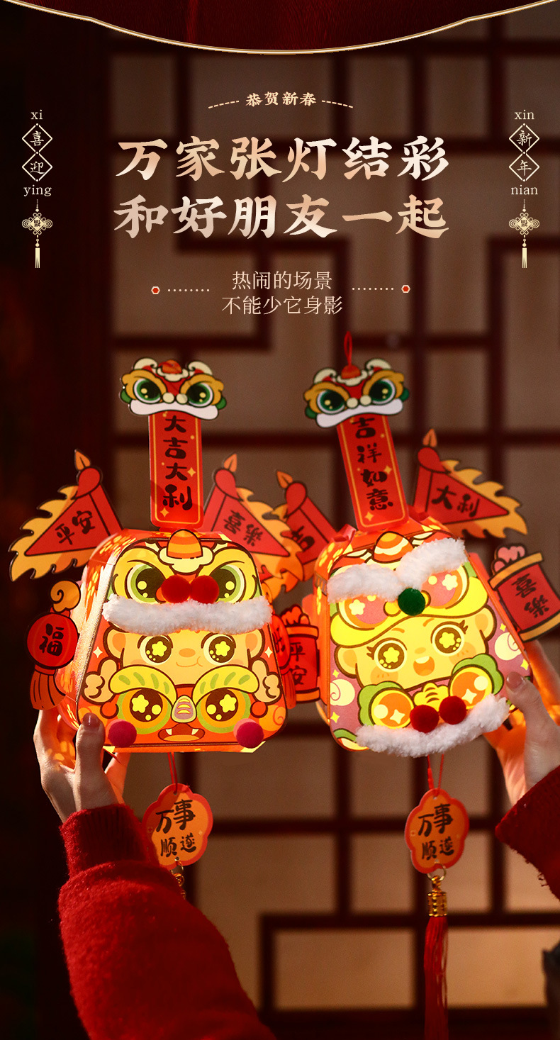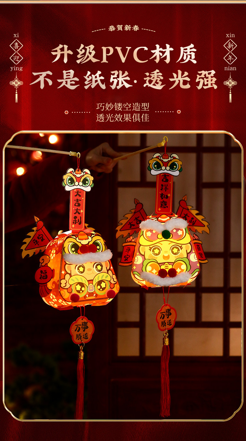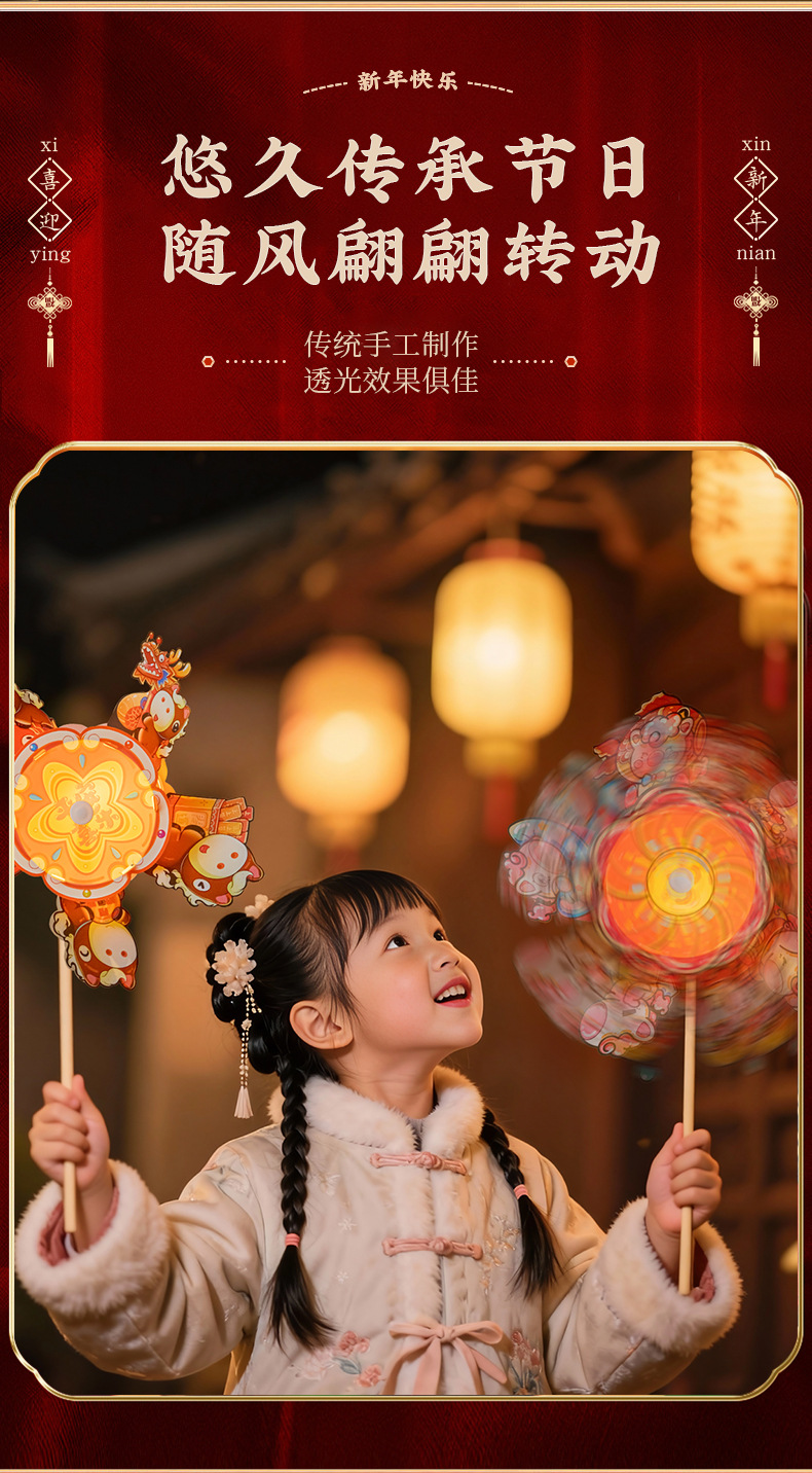 新年手提风车灯笼2026春节元宵花灯过年宫灯新款手工diy发光挂件