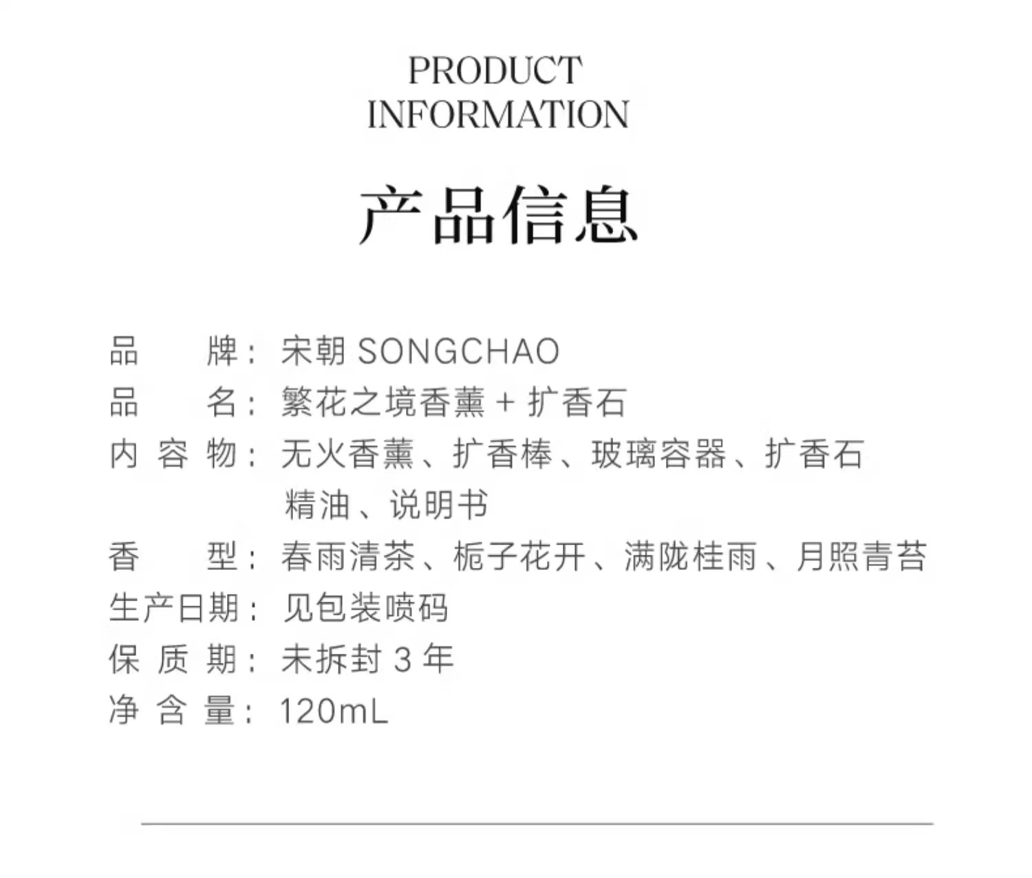 宋朝繁花之境清茶香无火香薰精油扩香石礼盒定制生日持久家用高级繁花之境系列无火香氛(满陇桂雨)+扩香石礼盒