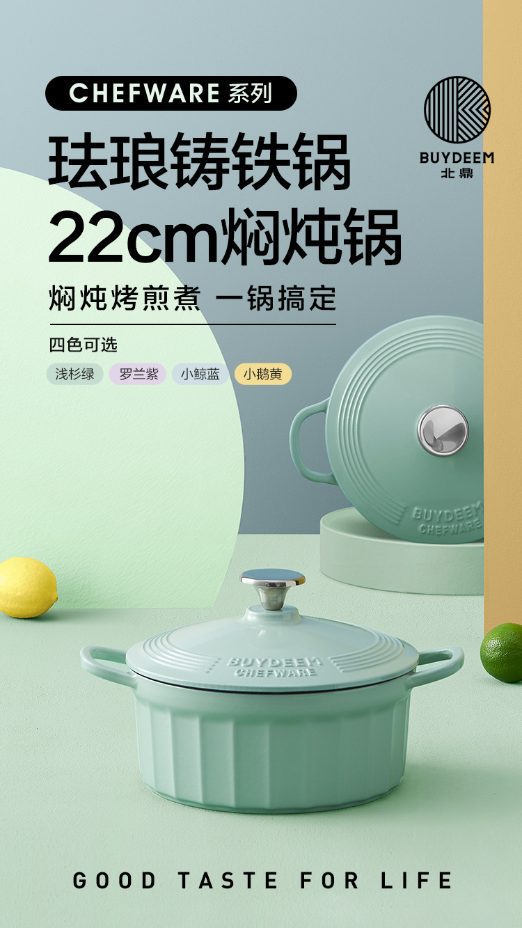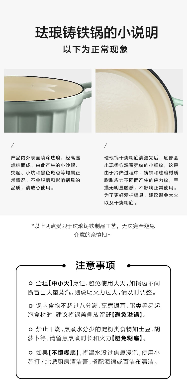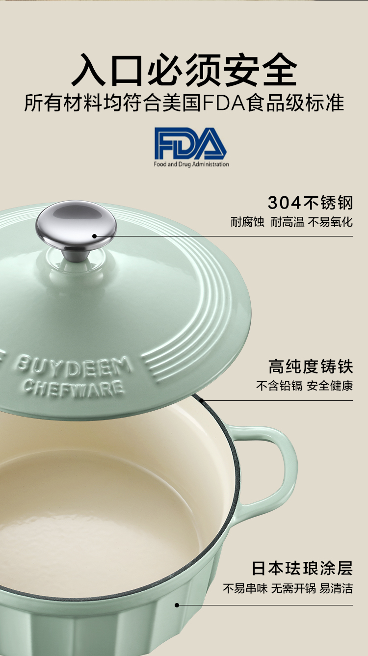 Buydeem/北鼎 珐琅铸铁锅22cm 煲汤家用焖炖锅一锅多用[福利品]