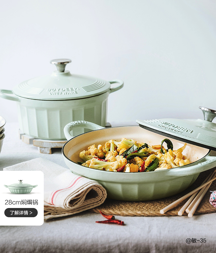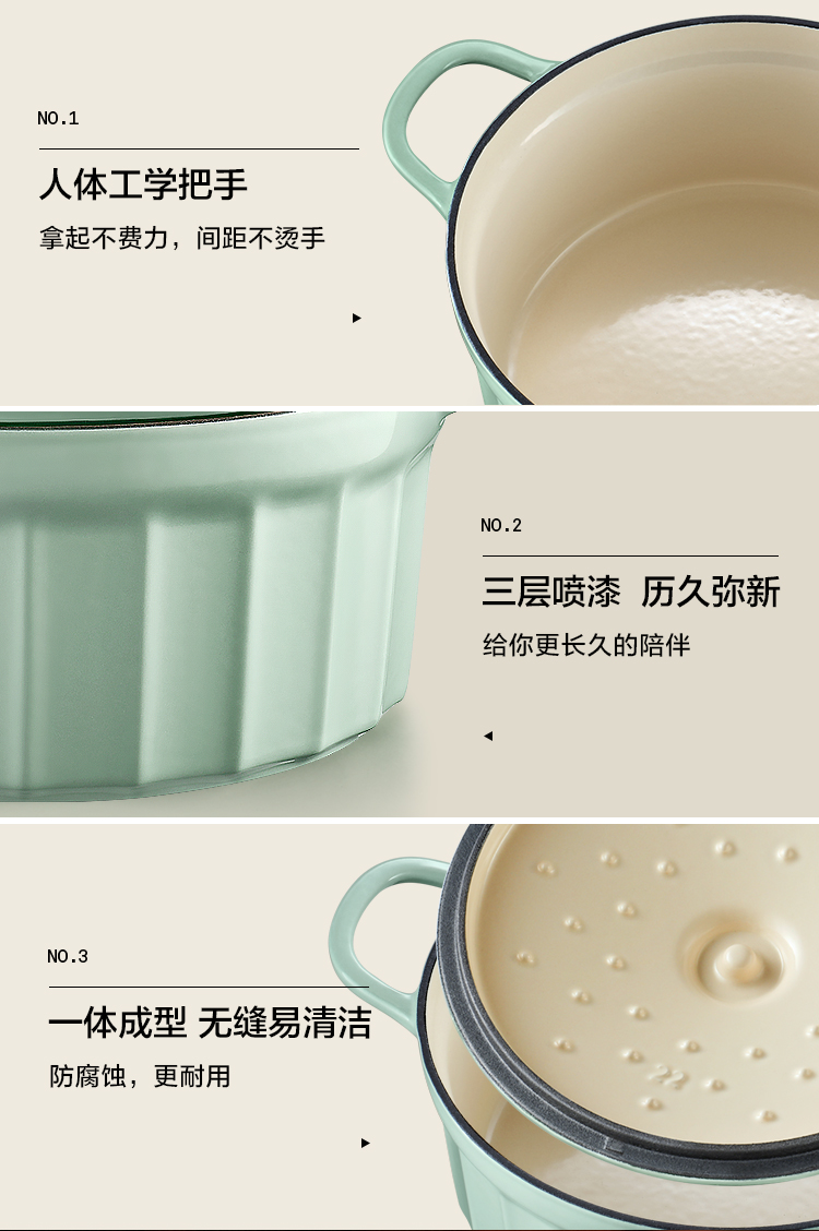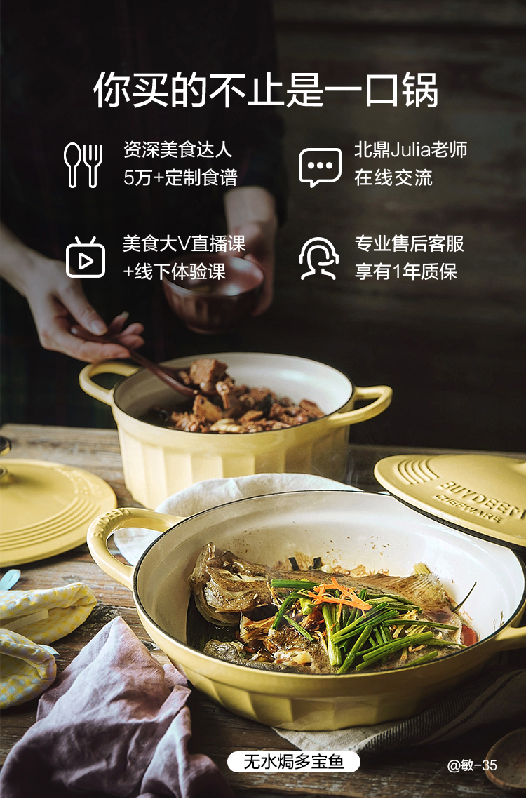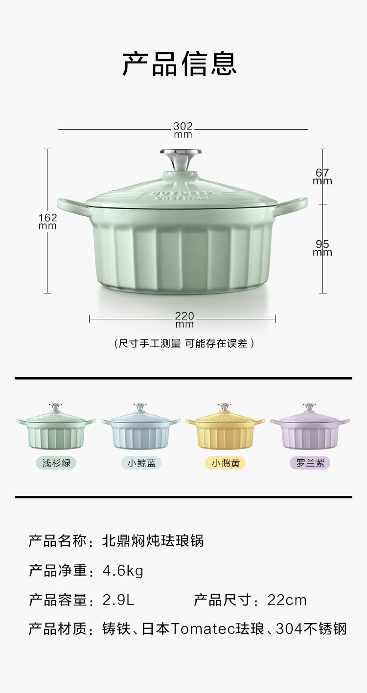 Buydeem/北鼎 珐琅铸铁锅22cm 煲汤家用焖炖锅一锅多用[福利品]