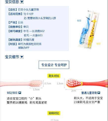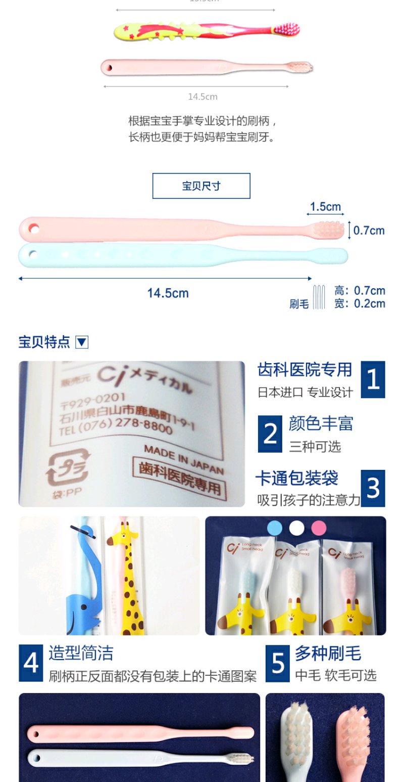 CI齿科专用0-6岁儿童中毛软毛小头日本进口牙刷602-603系列