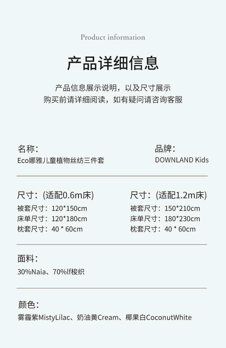 预售|Downland Eco娜雅儿童植物丝纺三件套 150*210cm [福利品]