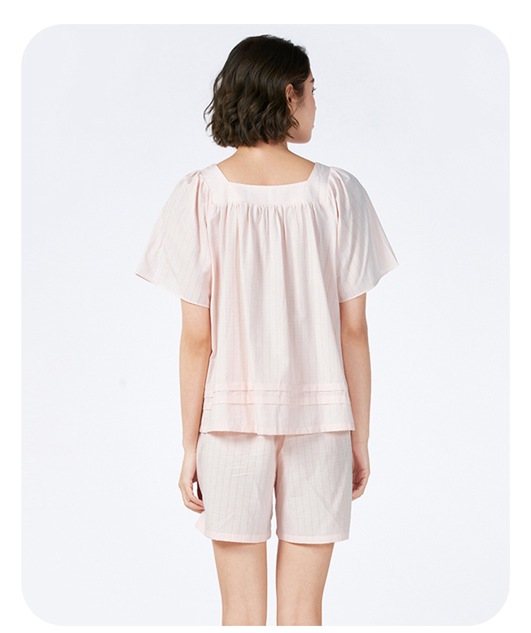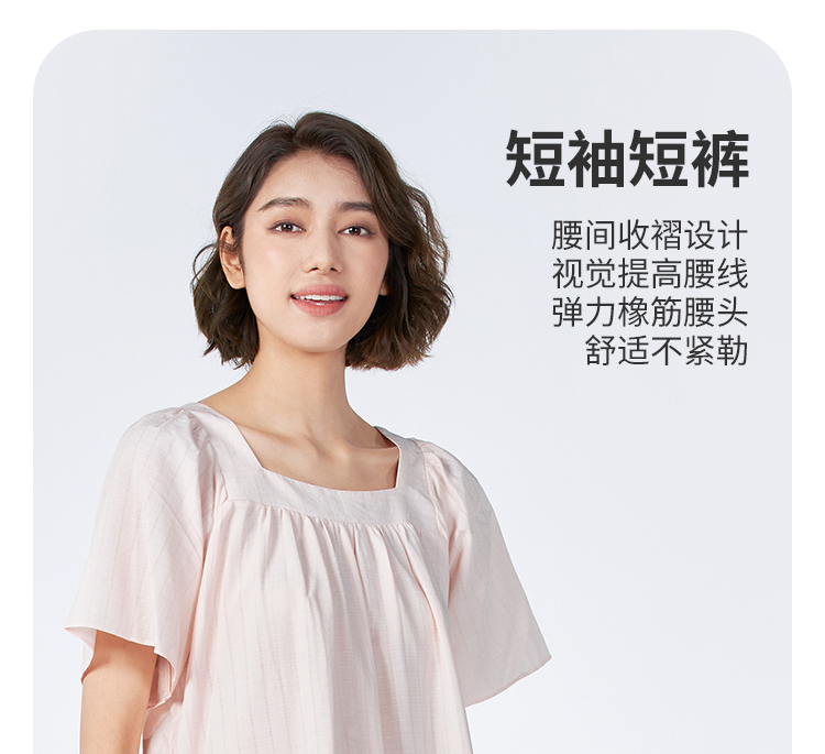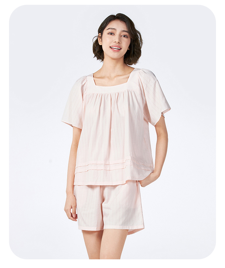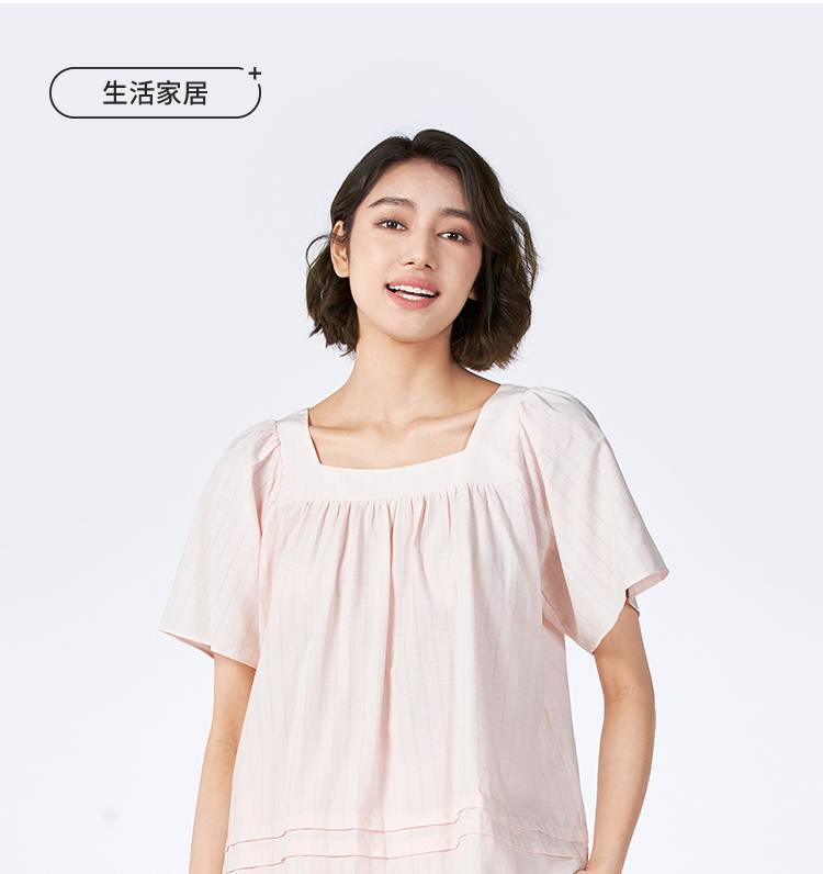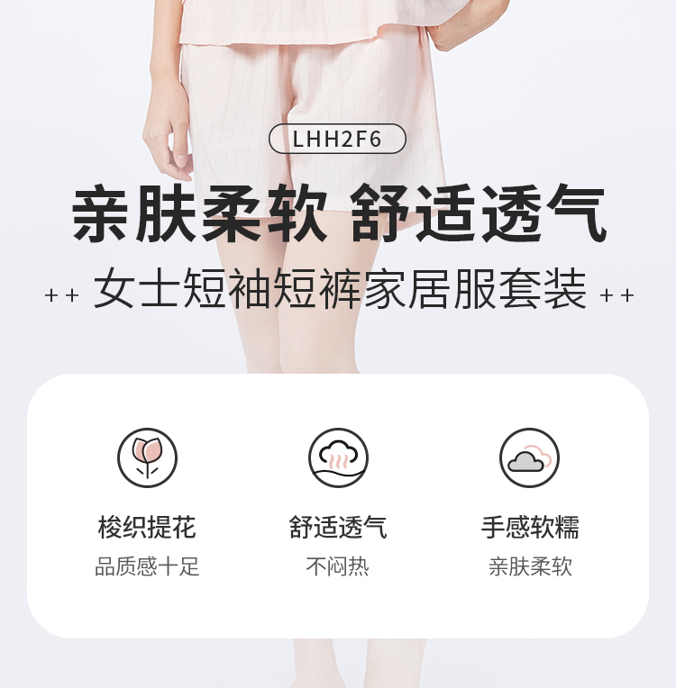 都市丽人女士梭织棉短袖套装薄梭织提花生活家居短袖类LHH2F6