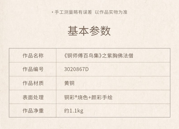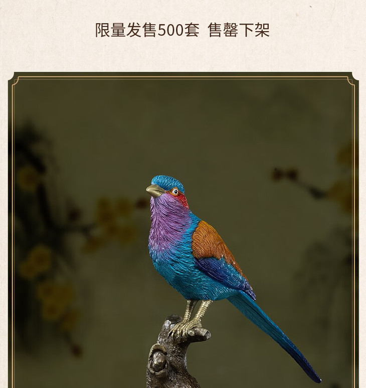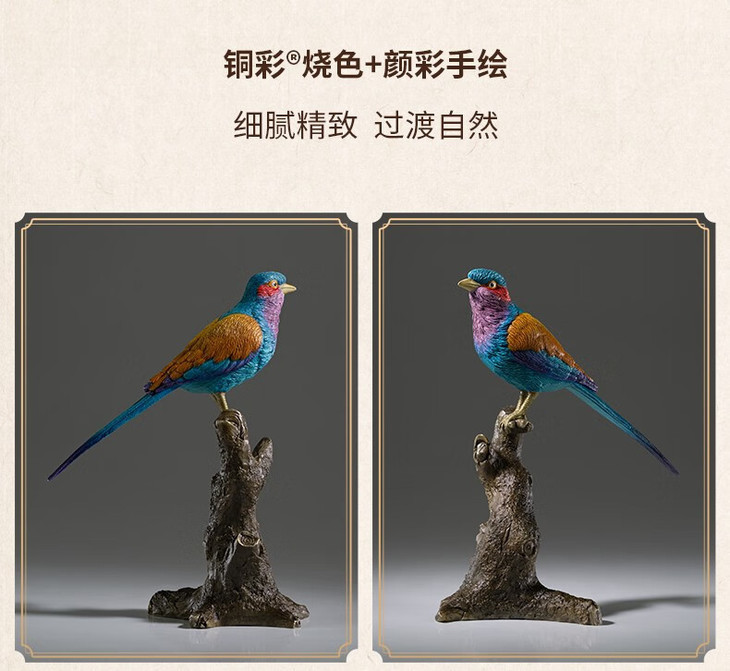 铜师傅 全铜摆件《铜师傅百鸟集》之紫胸佛法僧 家居饰品