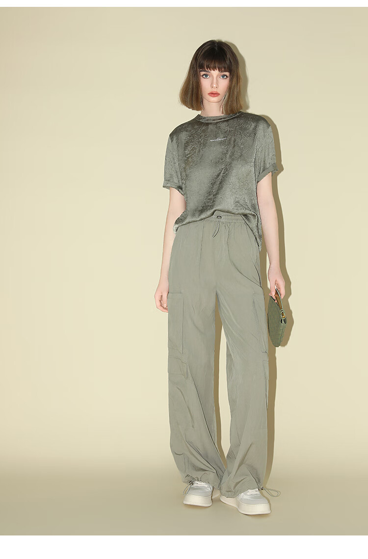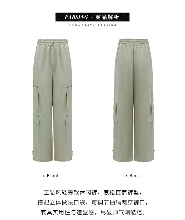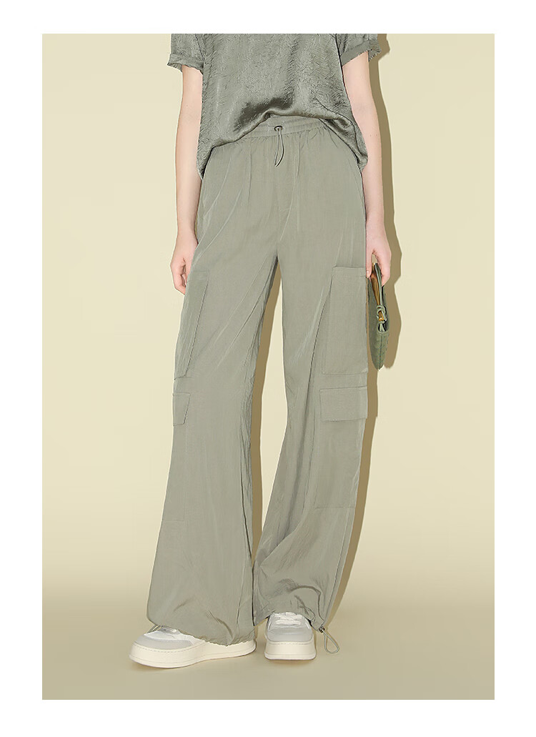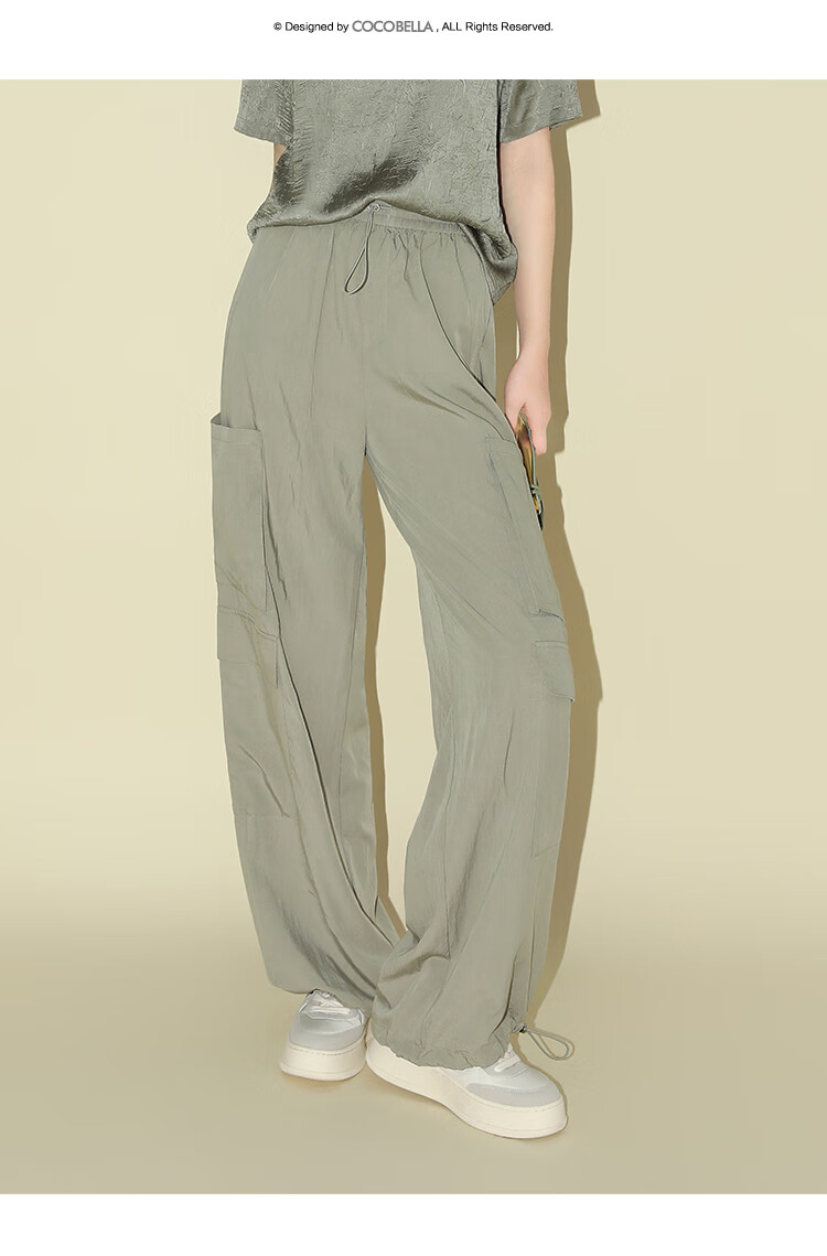 COCOBELLA工装风轻薄阔腿降落伞裤两穿抽绳直筒休闲裤PA7025