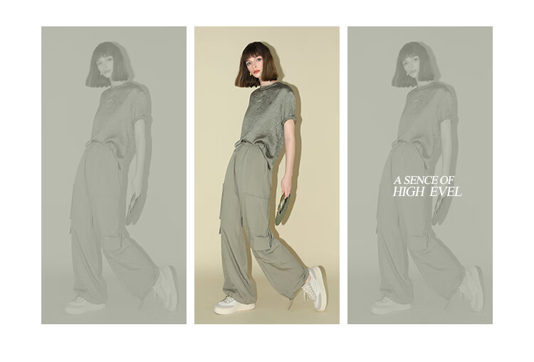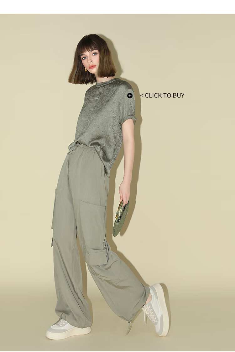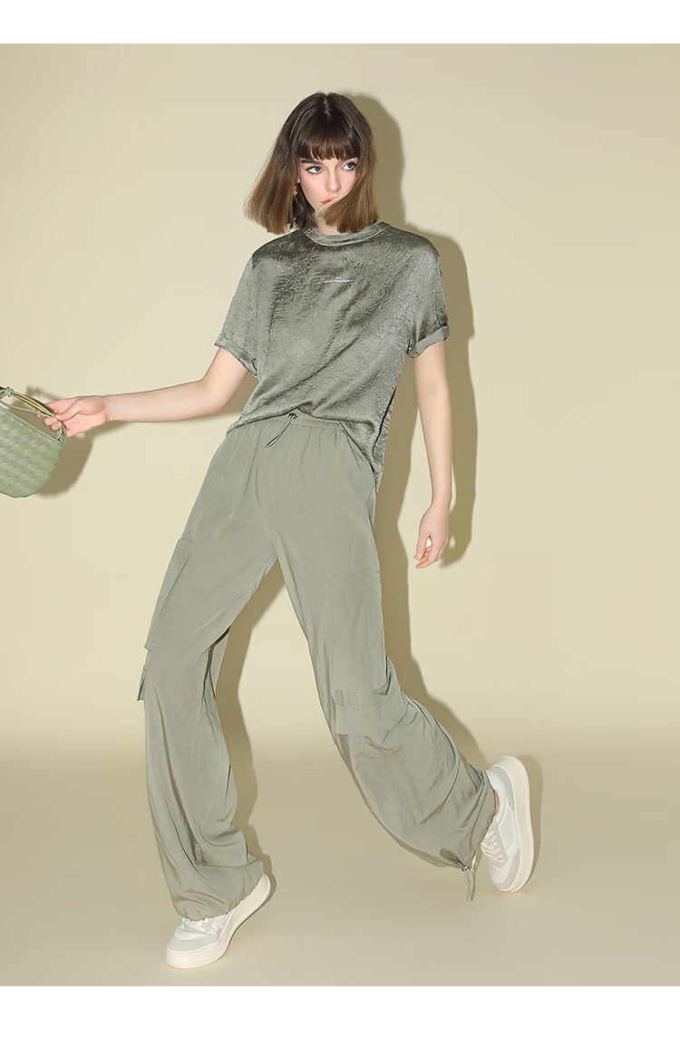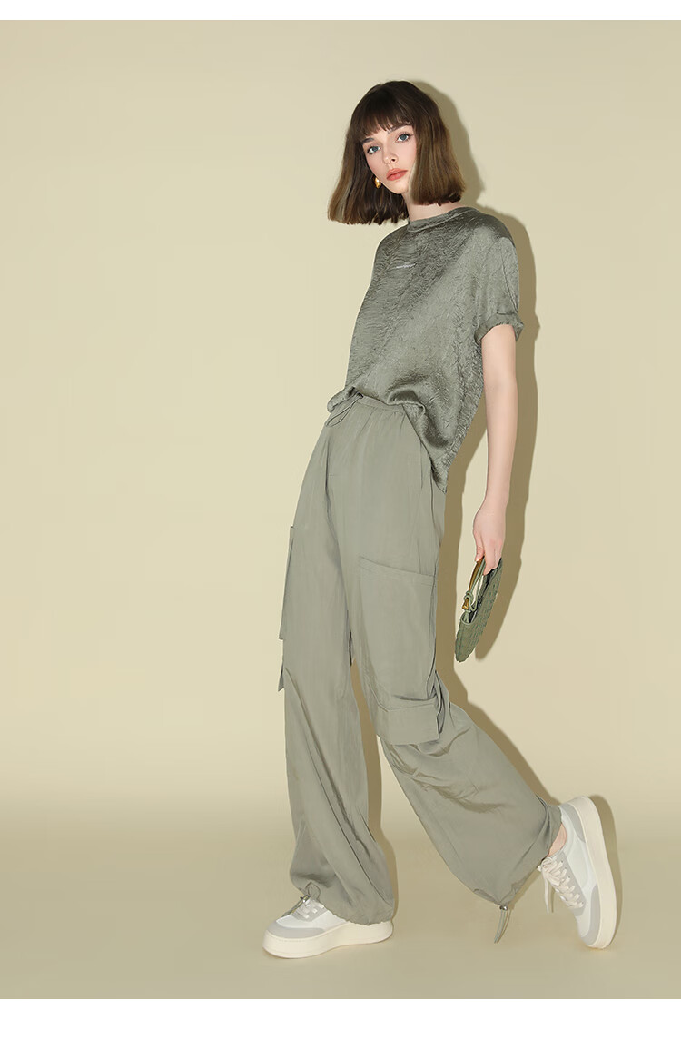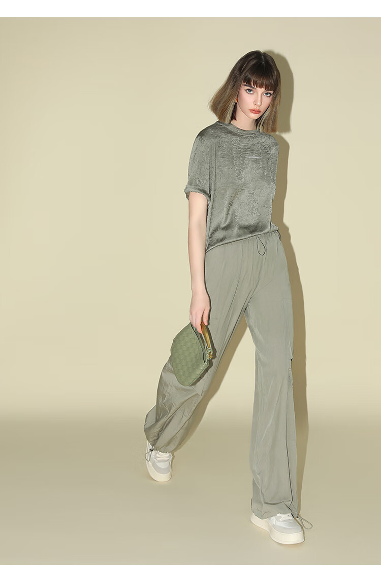 COCOBELLA工装风轻薄阔腿降落伞裤两穿抽绳直筒休闲裤PA7025