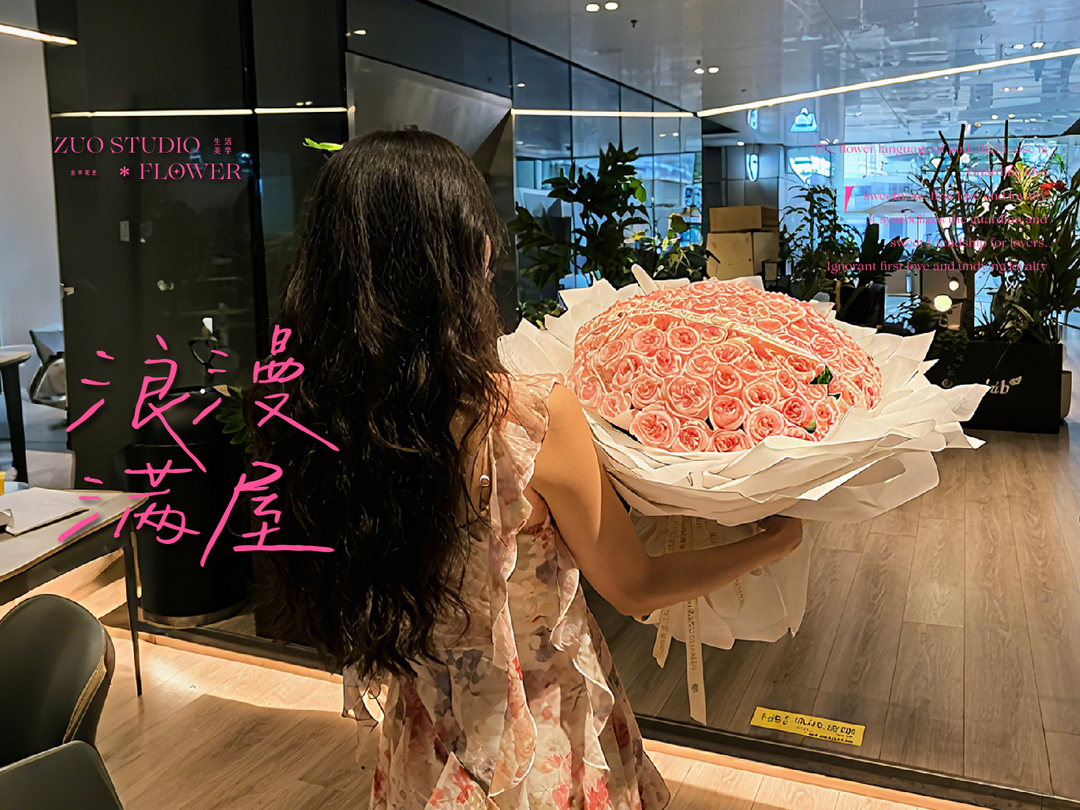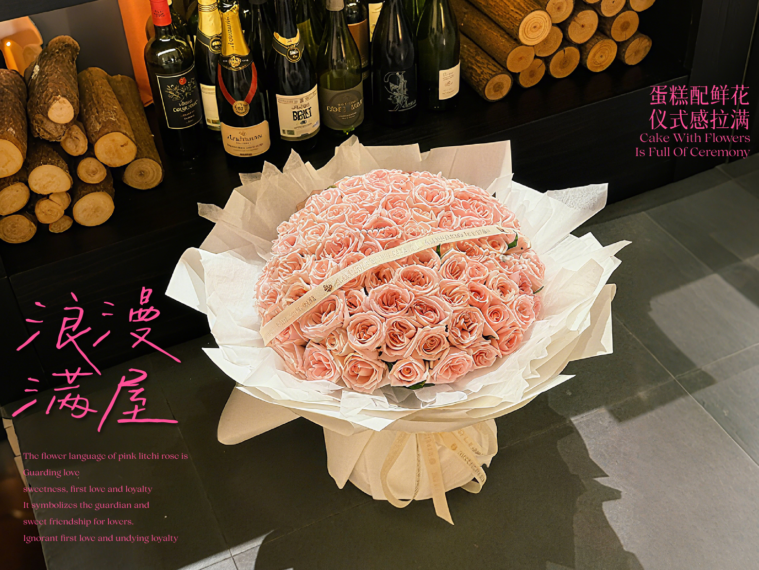 高奢款【浪漫满屋】粉色荔枝玫瑰99支/求婚纪念日告白花束/高级感/仪式感/深圳配送