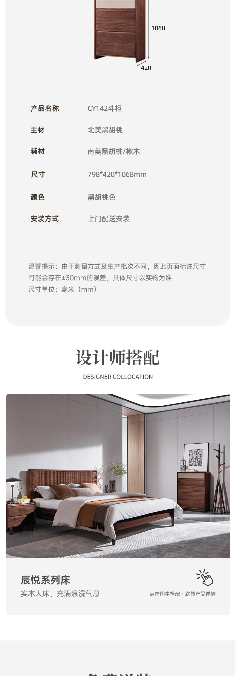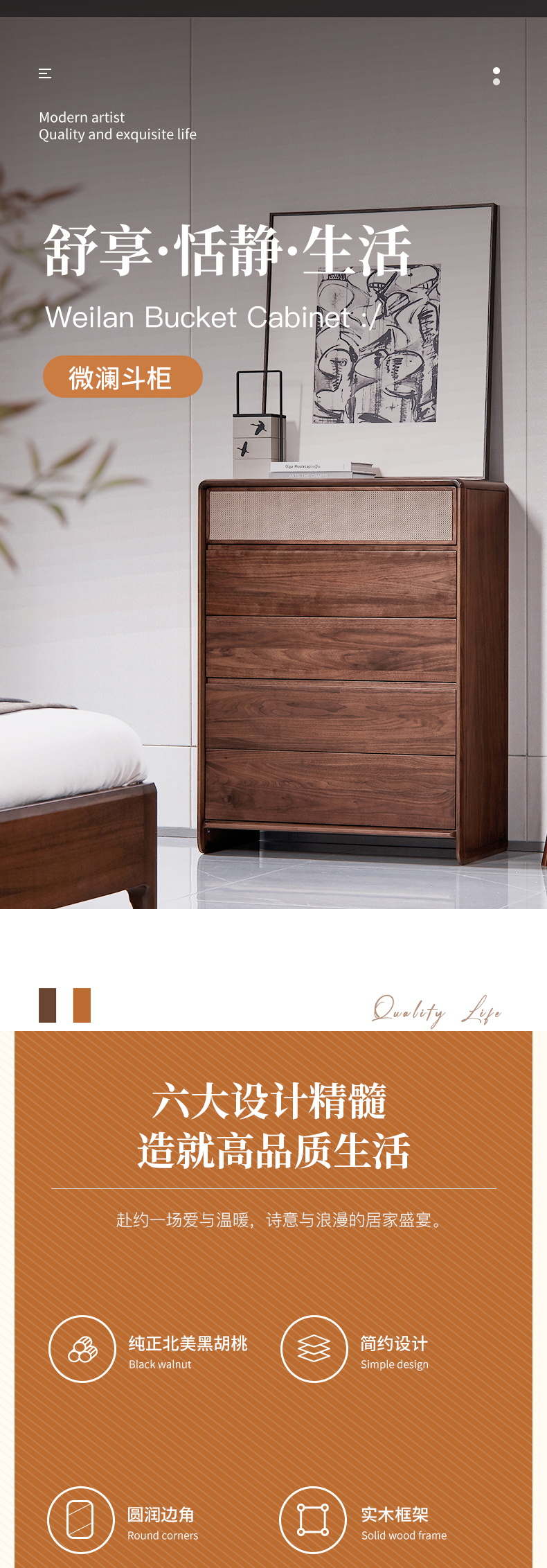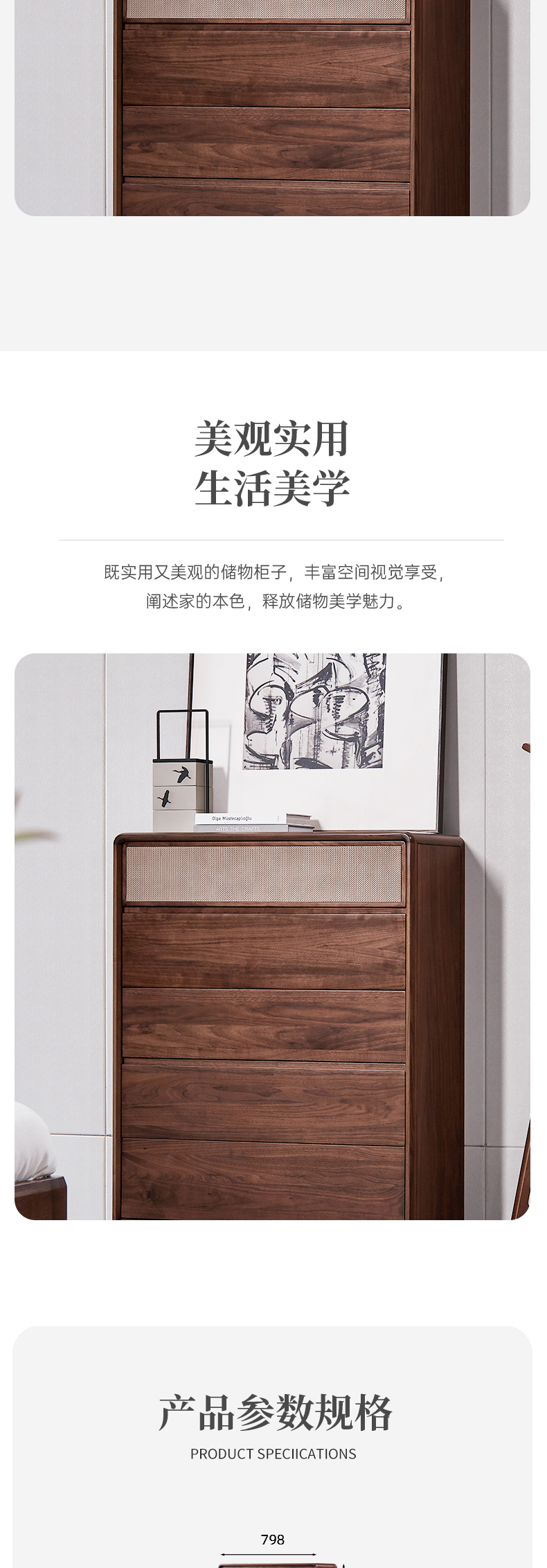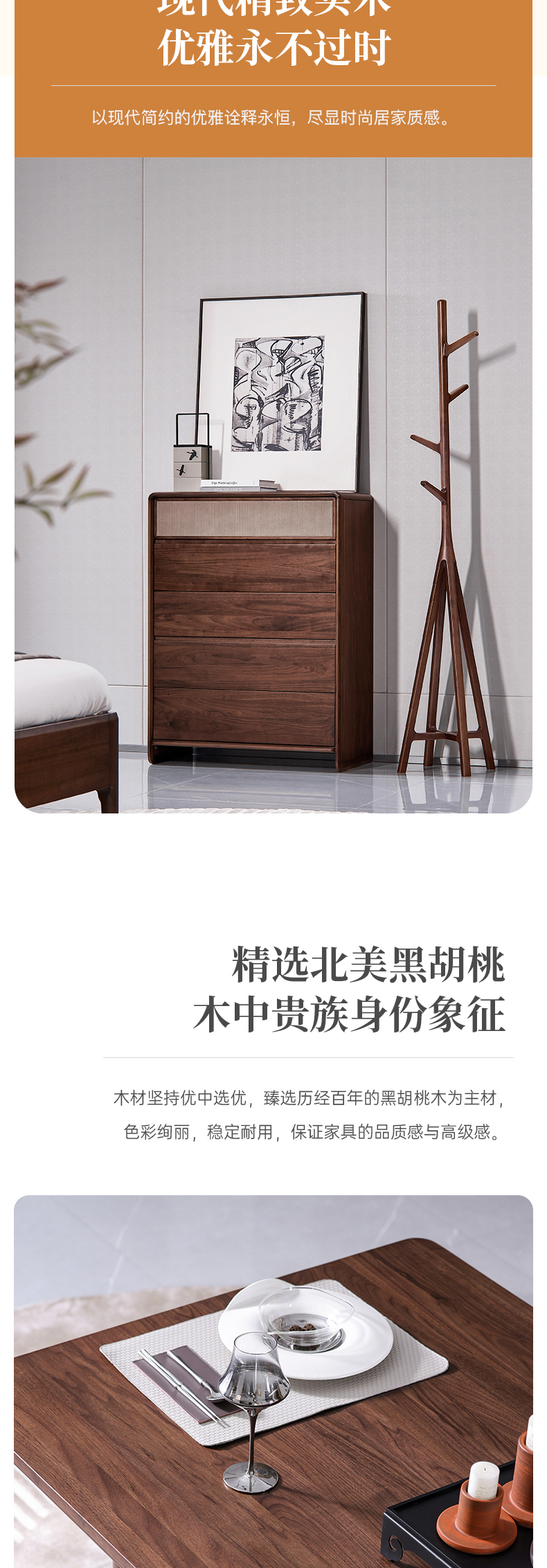 【现代风-CY142斗柜】现代风/卧室/北美黑胡桃木/ 实木+编织皮斗柜