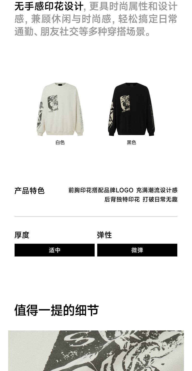 CHINISM赤尘 重磅印花圆领卫衣男秋季新款宽松复古纯棉套头外套