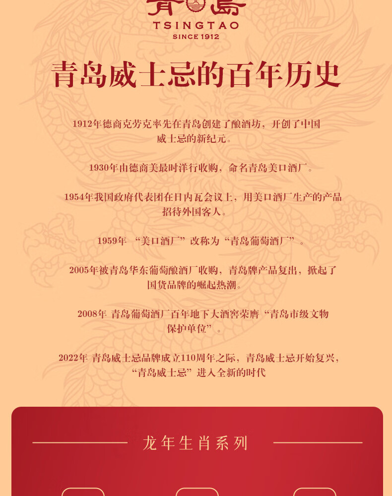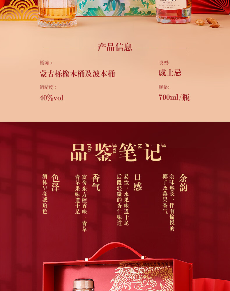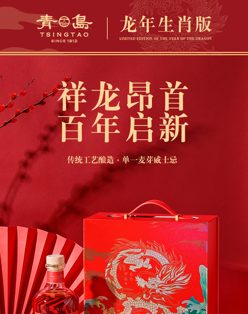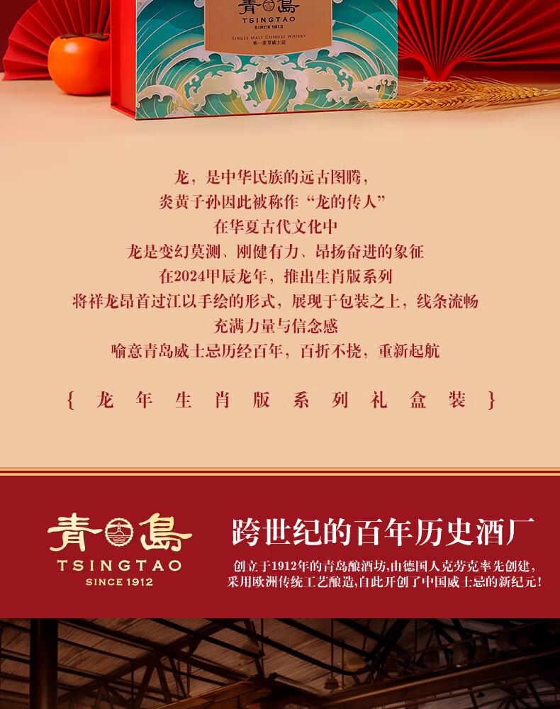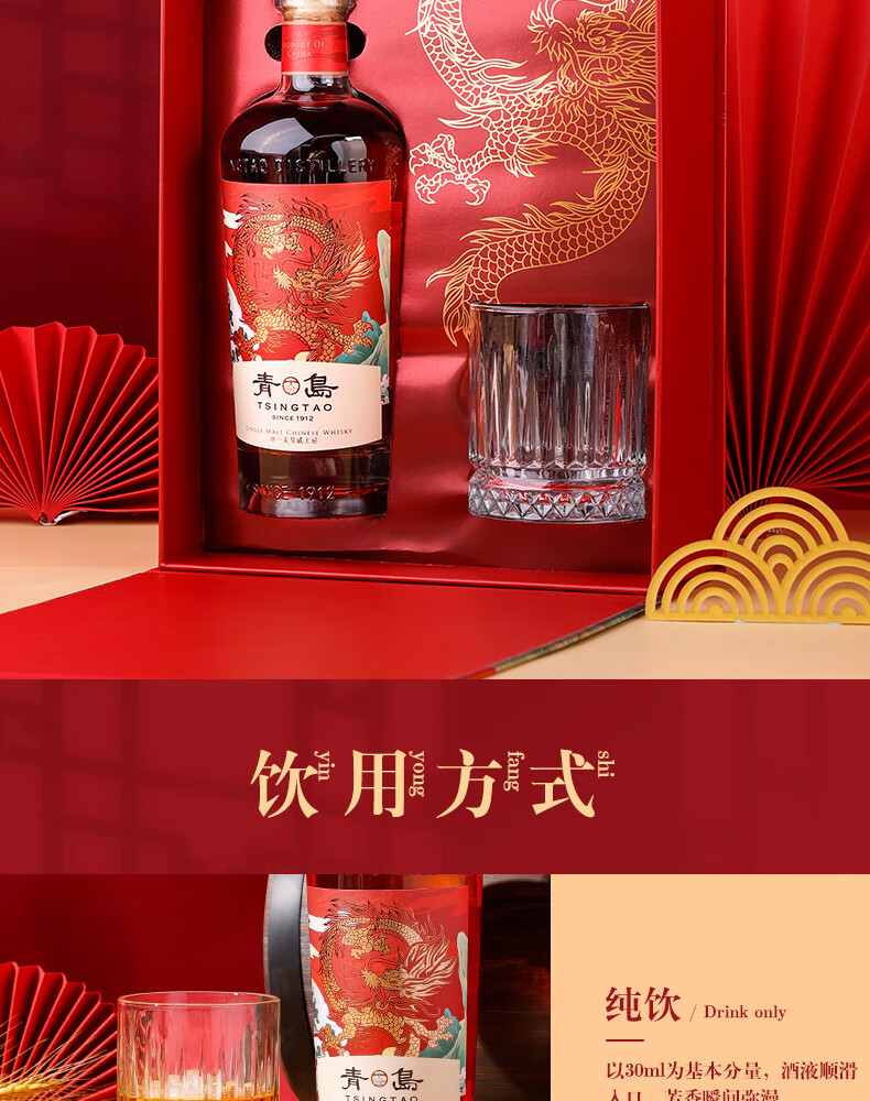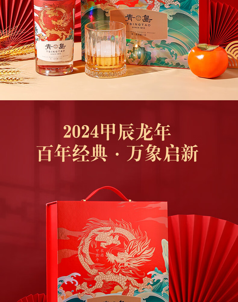青岛威士忌龙年生肖限定礼盒 酒+杯子