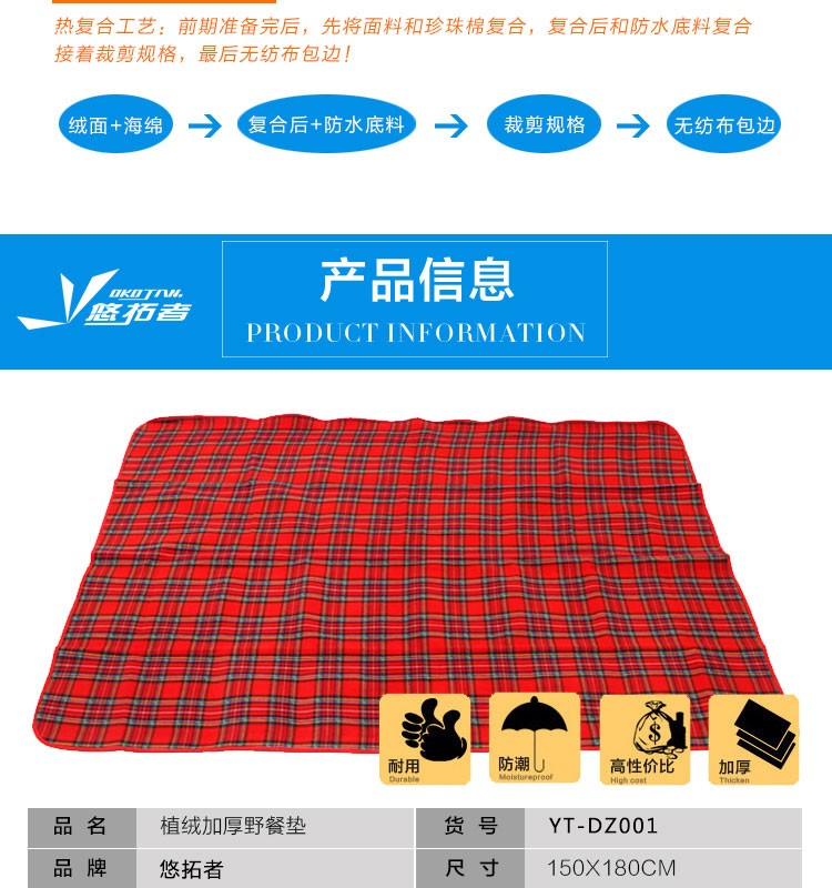悠拓者 植绒加厚野餐垫 YT-DZ001