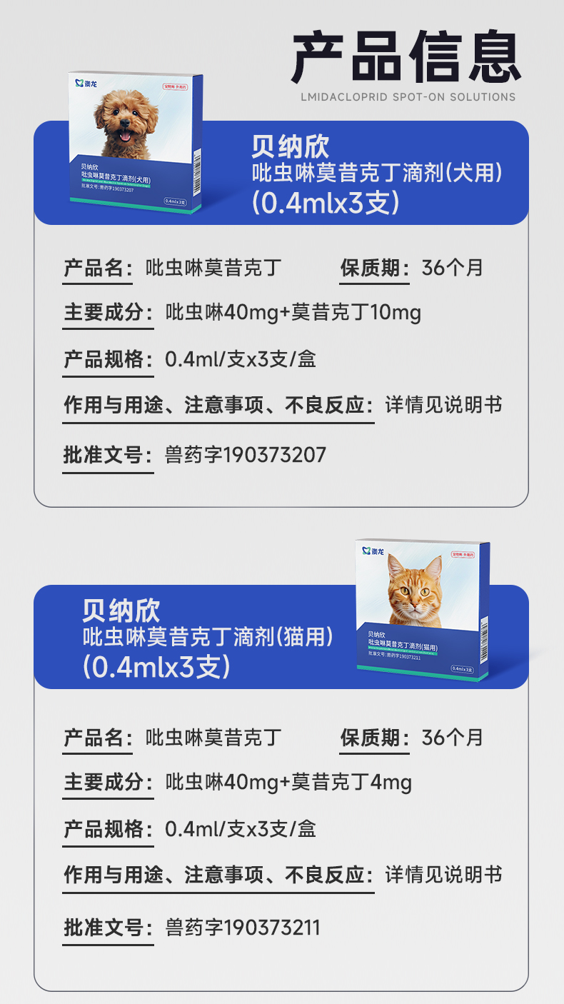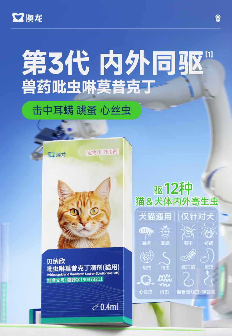 澳龙猫咪驱虫药体内外一体狗狗驱虫去跳蚤耳螨吡虫啉莫昔克丁滴剂