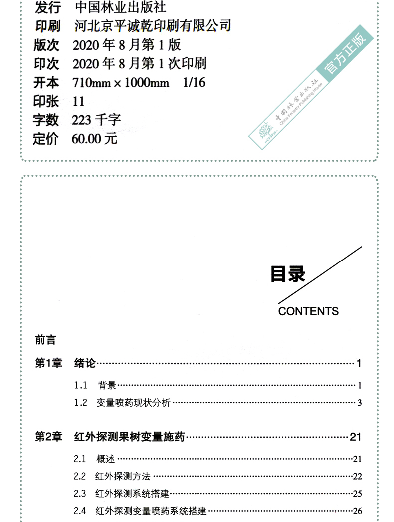 本书的内容可分为3部分,第1部分是背景,介绍变量喷药的基本情况;第2部分是理论探索,共3章,包括红外、超声和激光3种方法的探索;第3部分是实践应用,共2章,包括传感系统和装备系统的开发及应用。读者可根据需要独立学习,也可从前往后,由易往难,逐层深入,系统化地开展学习。